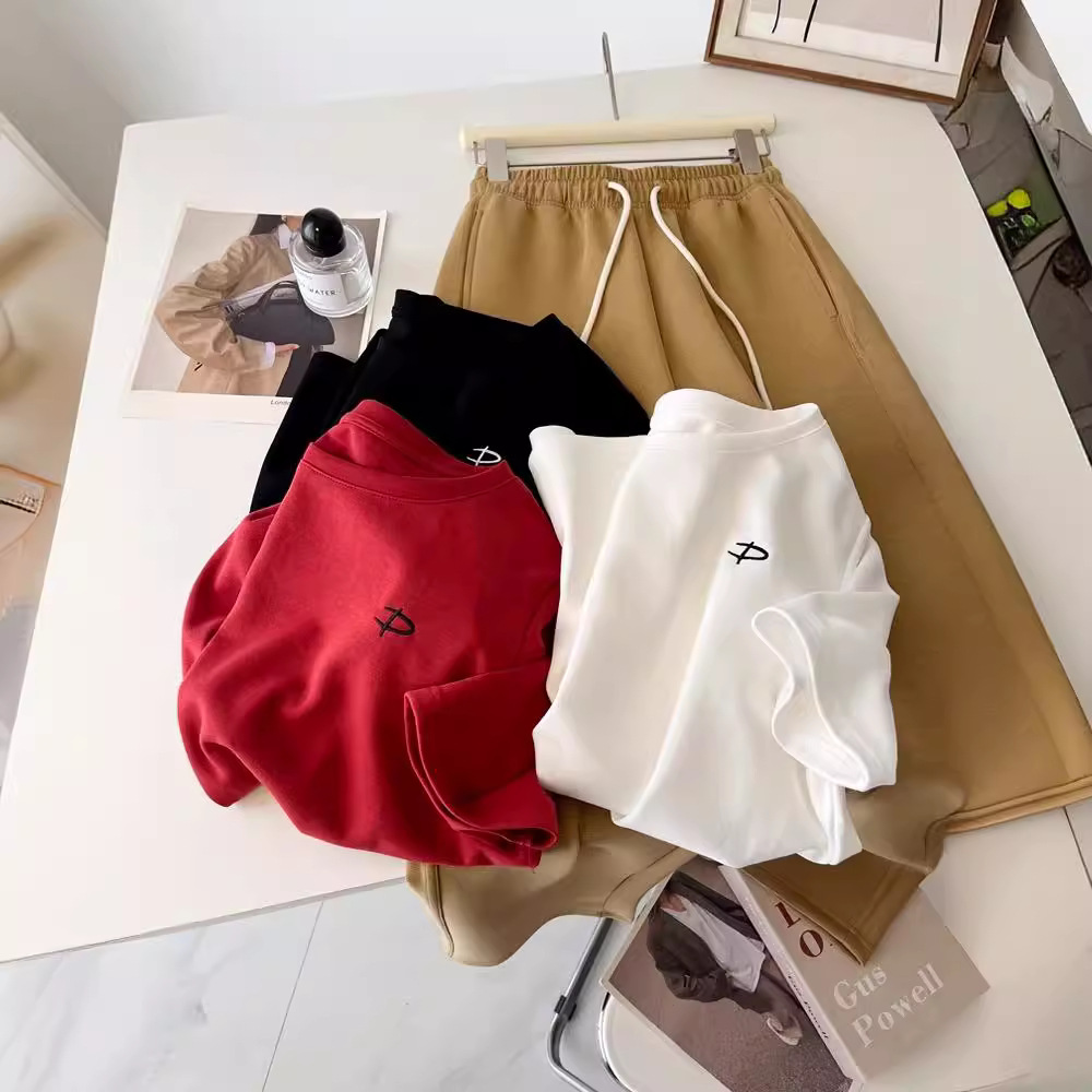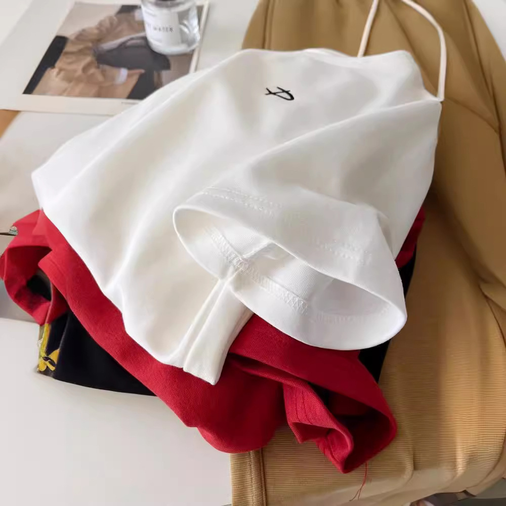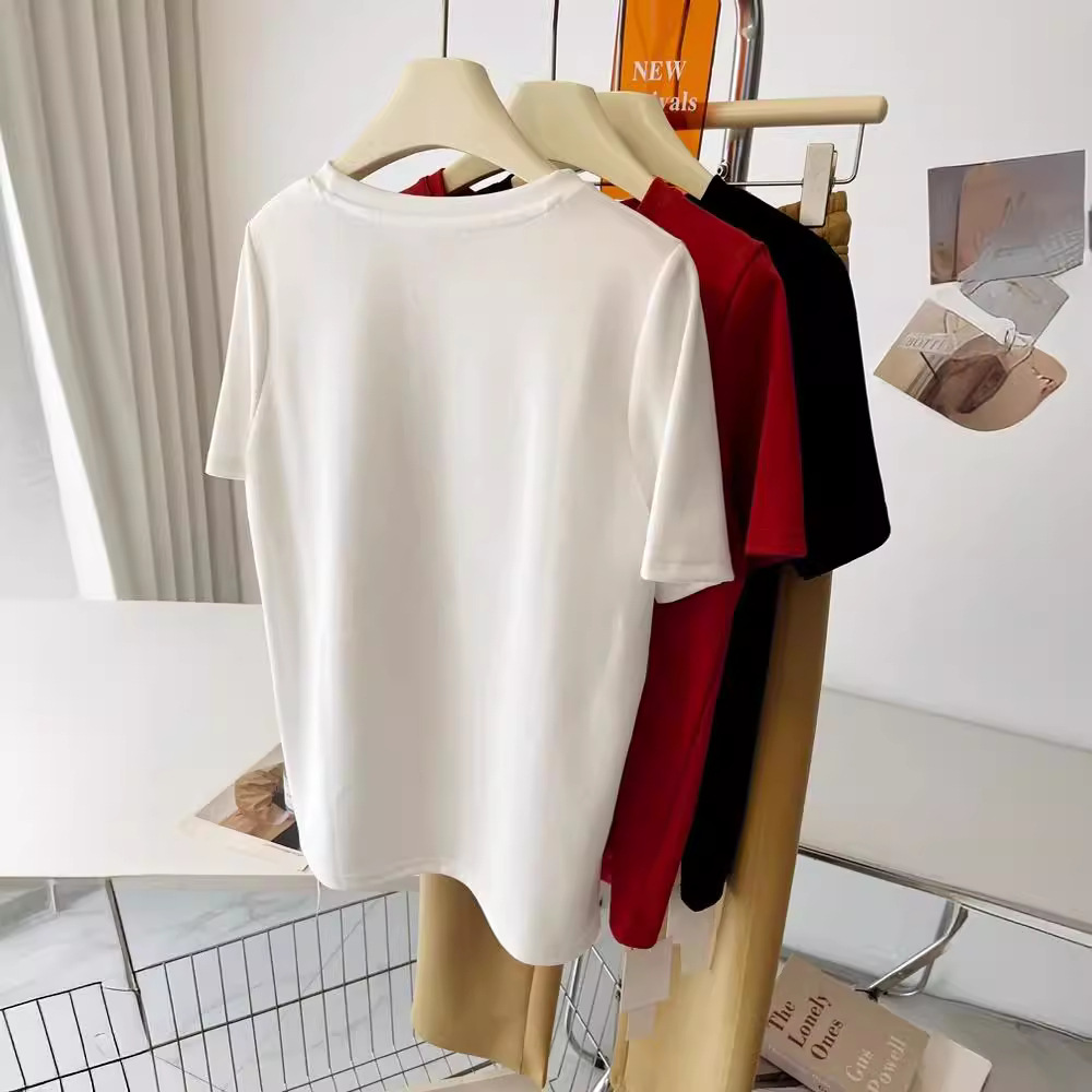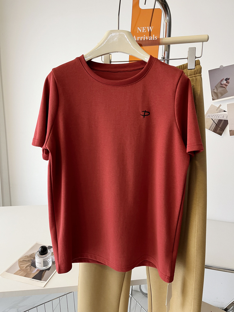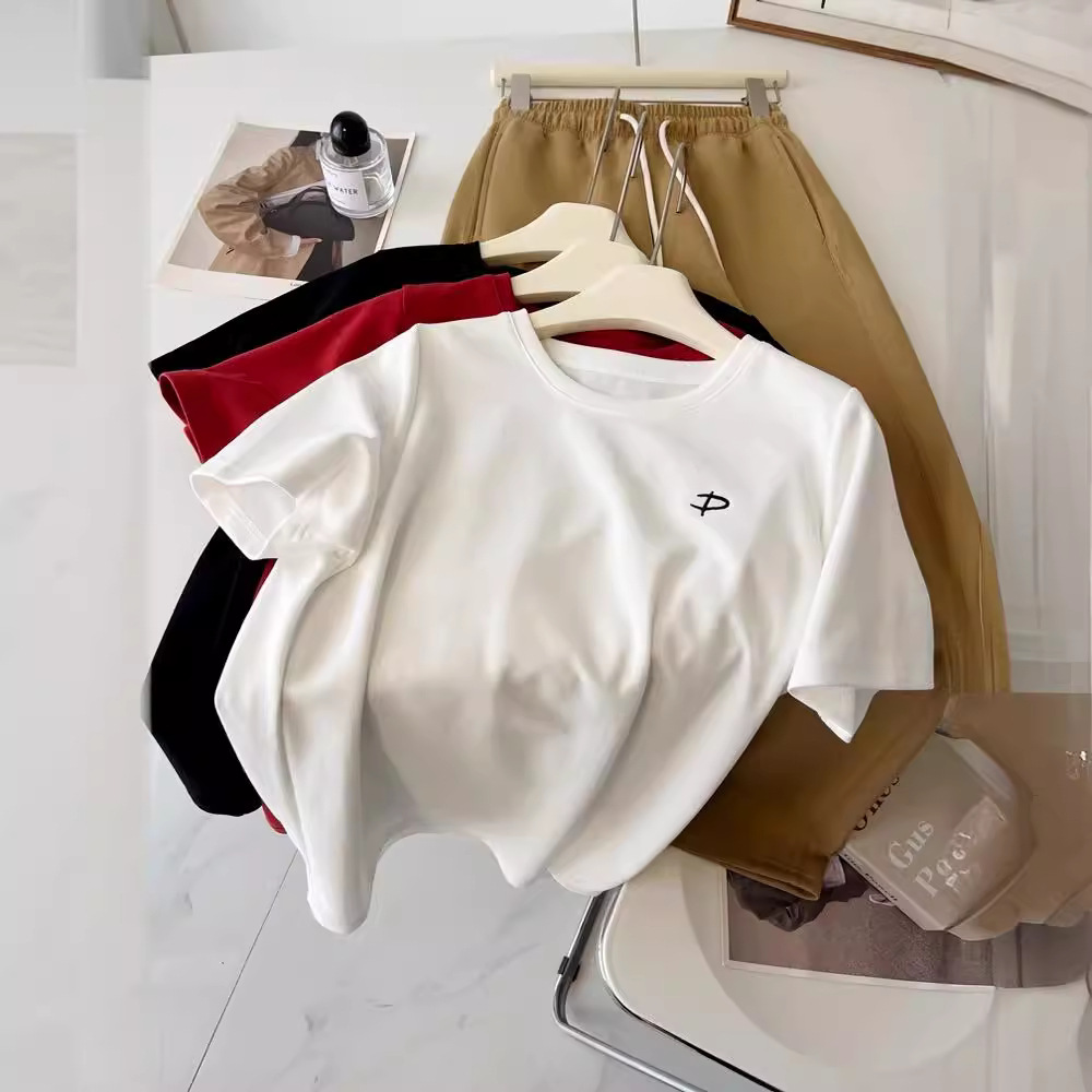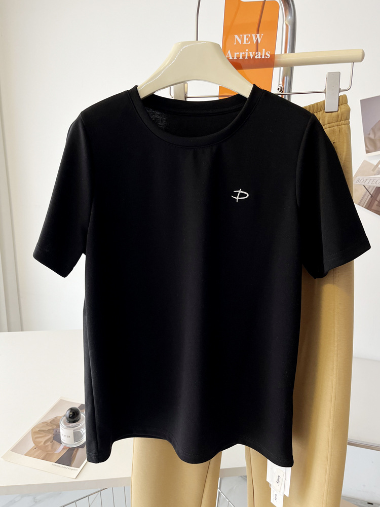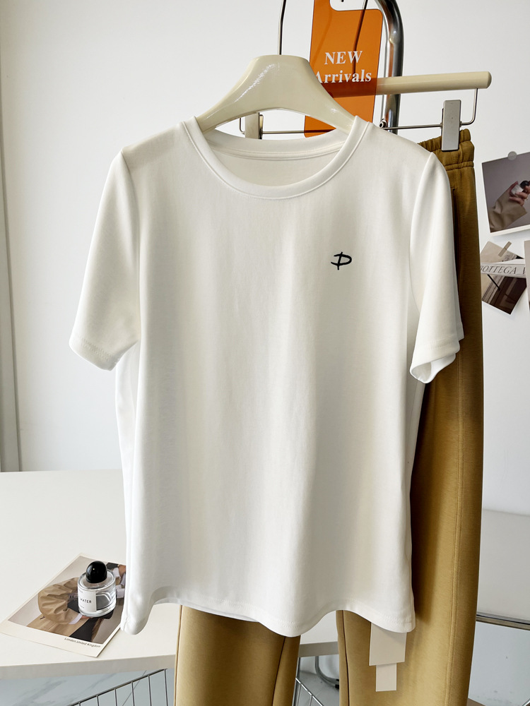 简约小刺绣~正肩短袖t恤女夏季洋气宽松气质休闲百搭打底衫上衣