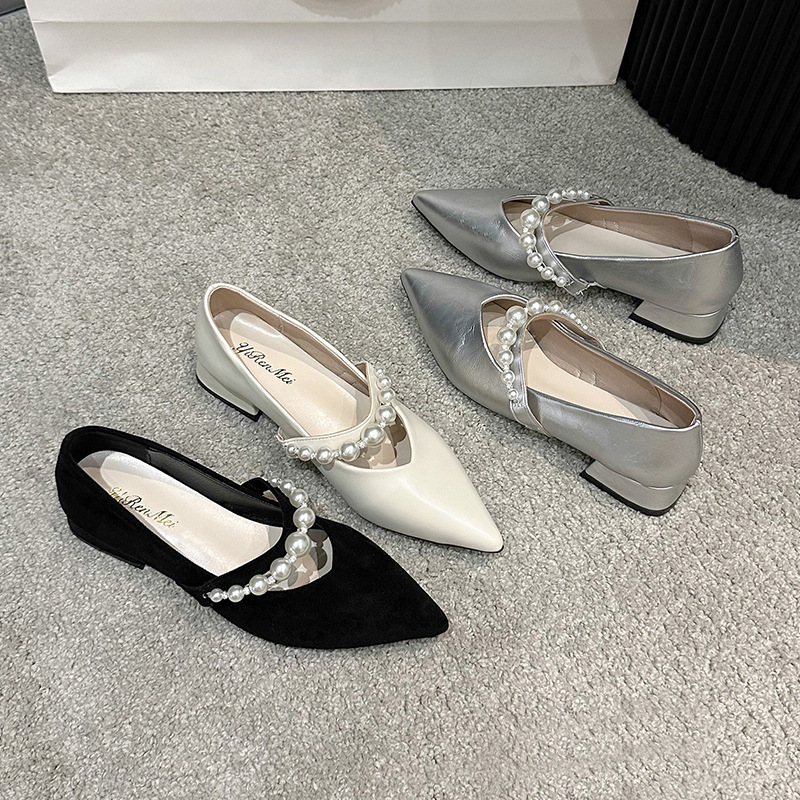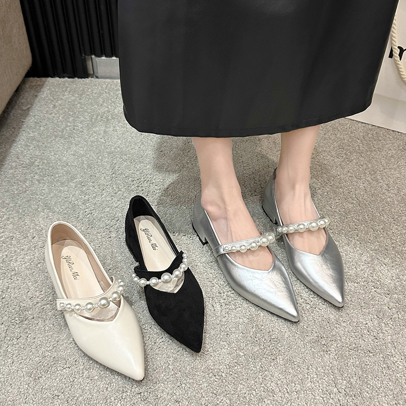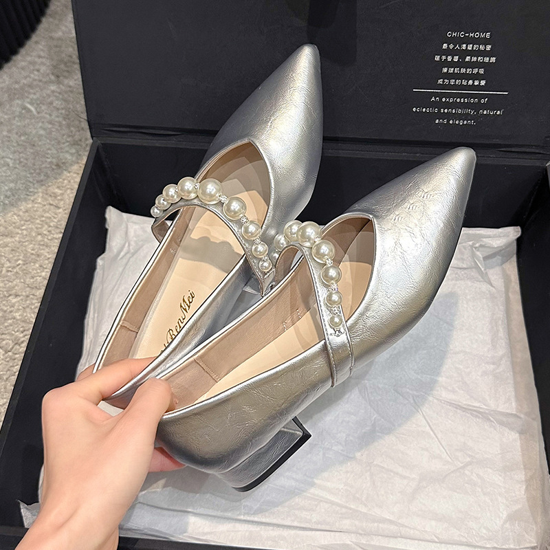 2025春夏尖头坡玛丽珍单鞋浅口一字扣带小众高级感银色气质低跟鞋