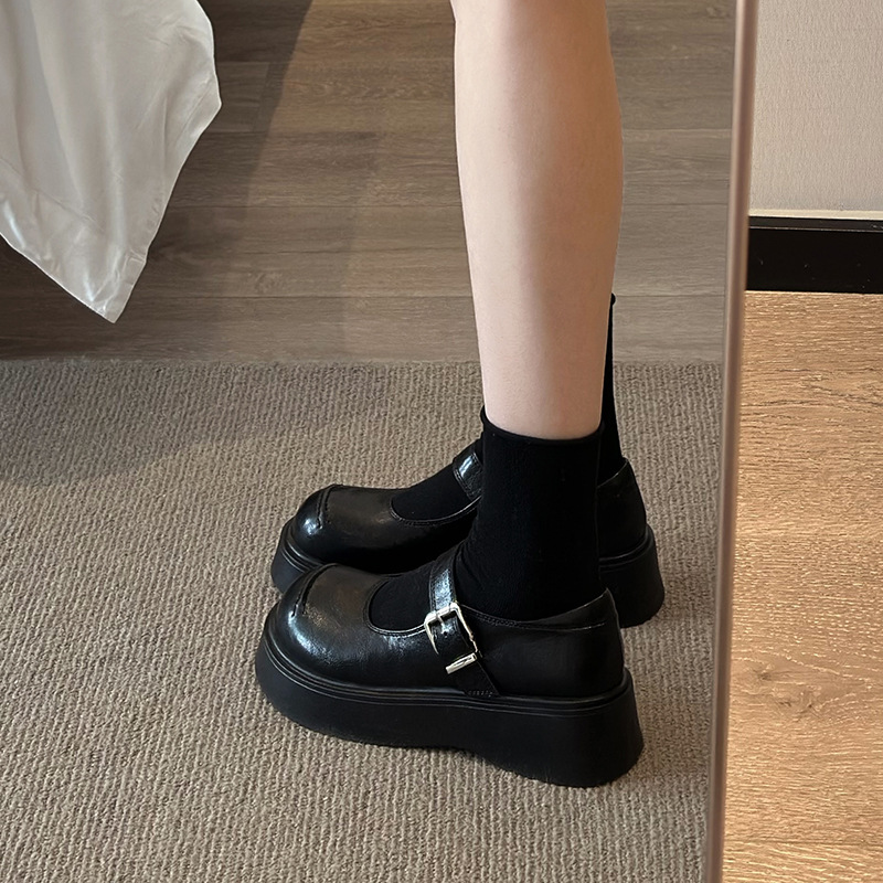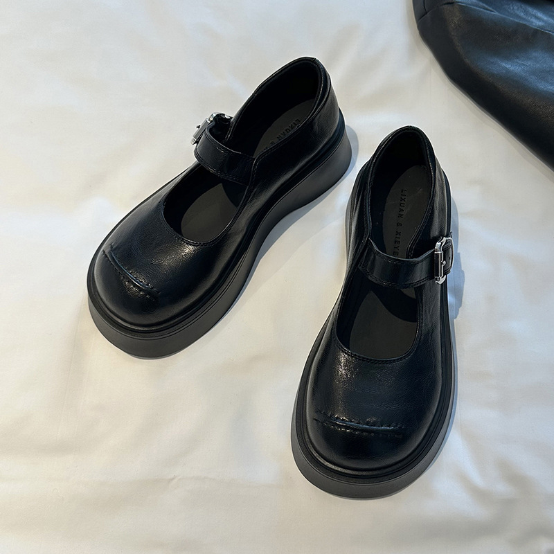 松糕厚底黑色英伦风小皮鞋女2025春季新款时尚百搭JK玛丽珍单鞋子