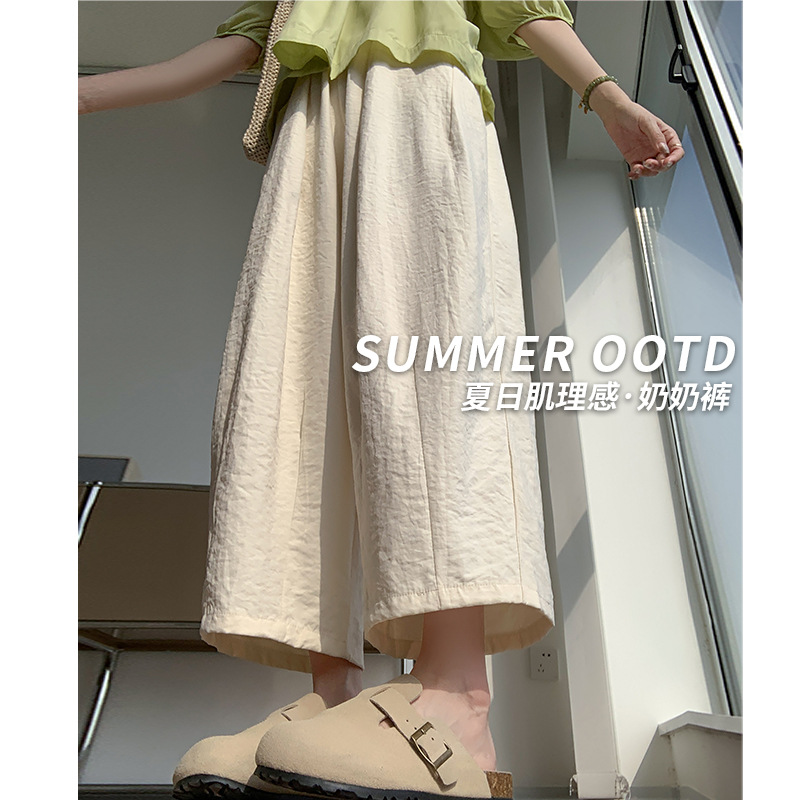 肌理感冰丝萝卜裤女夏薄款新款高腰显瘦阔腿裤休闲遛弯奶奶裤