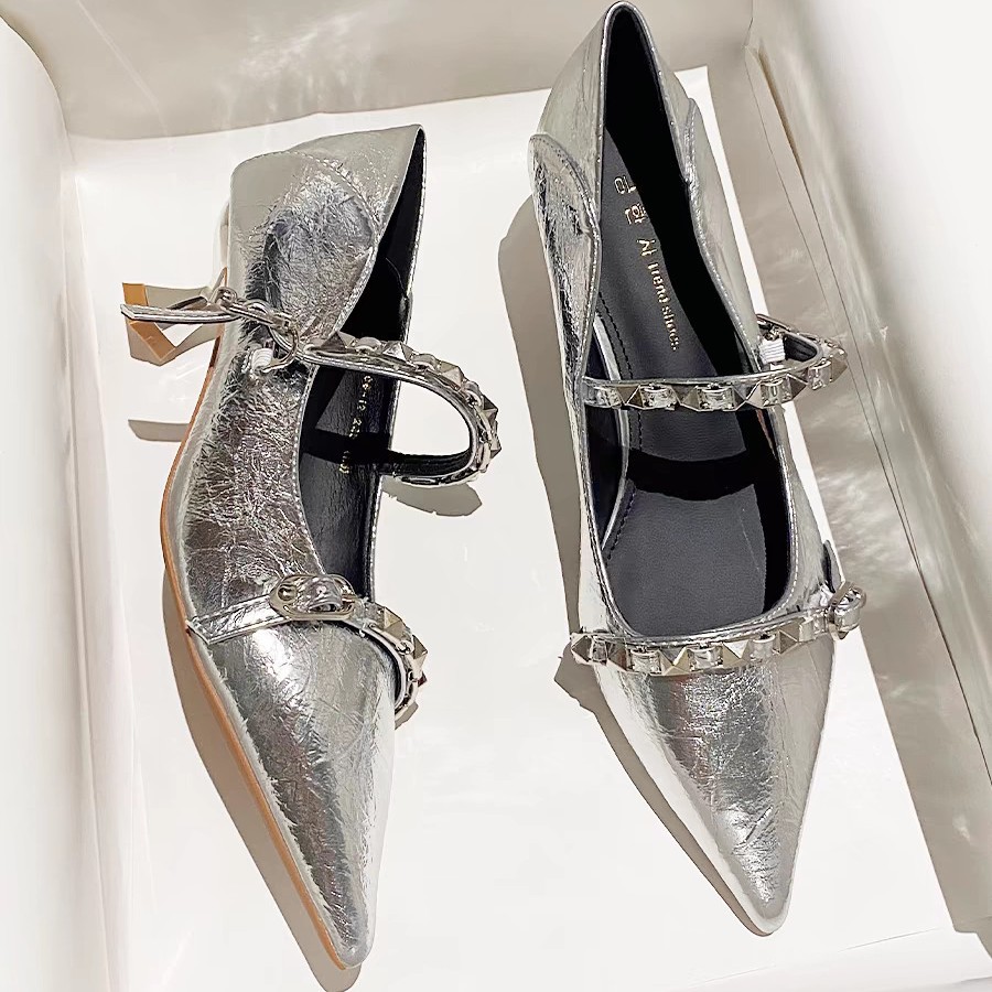 高跟鞋女鞋法式细跟高跟鞋女2025春季通勤工作鞋一字带浅口单鞋