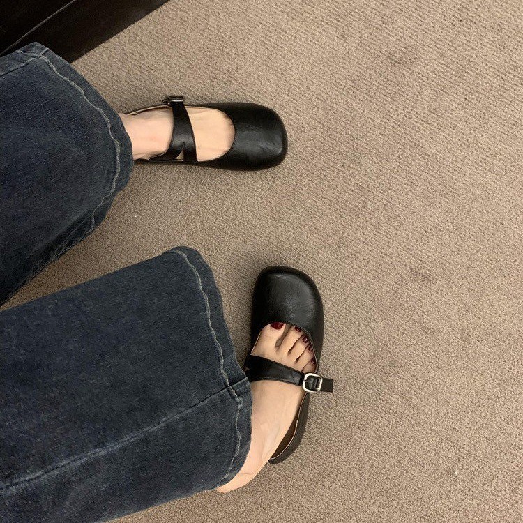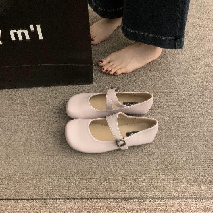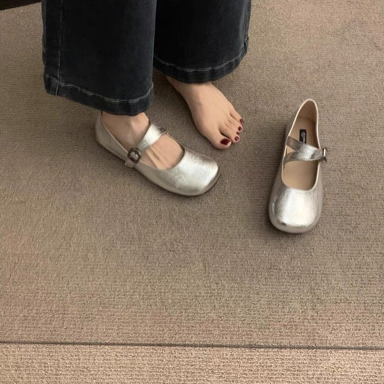平底银色玛丽珍鞋女鞋子2025年春秋新款浅口圆头一字带配裙子单鞋