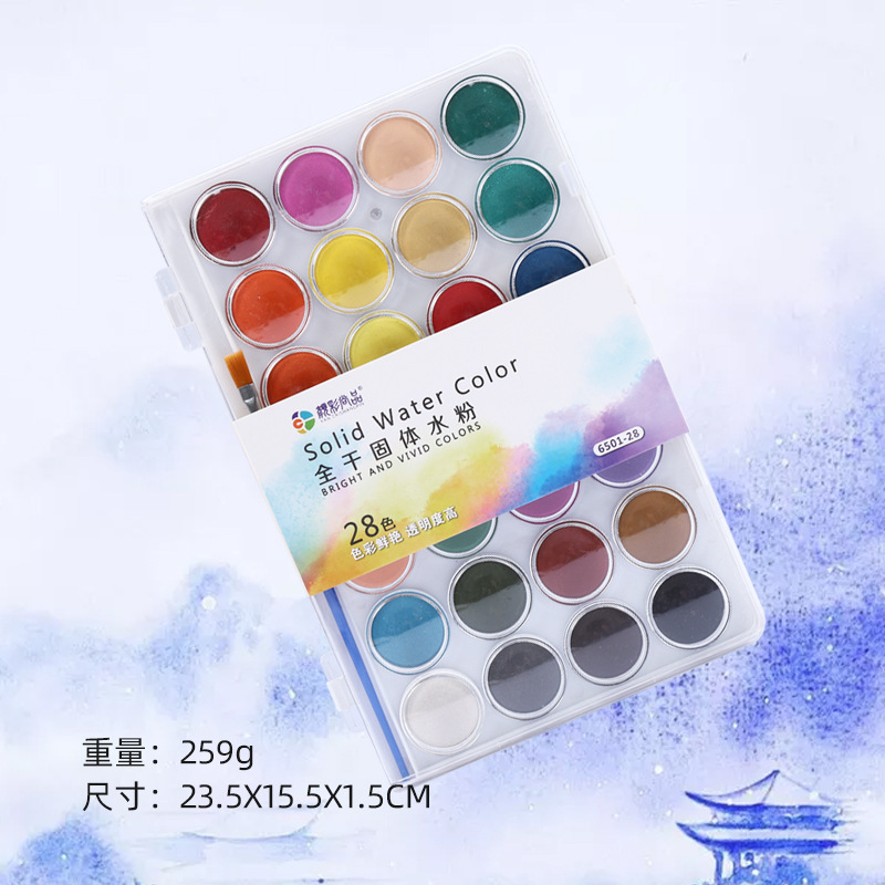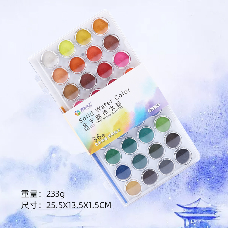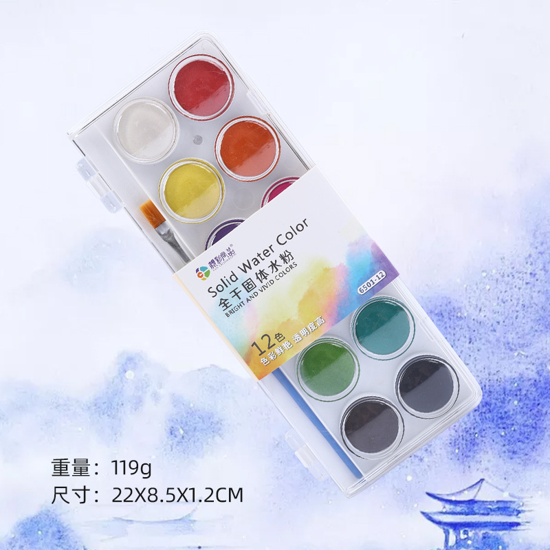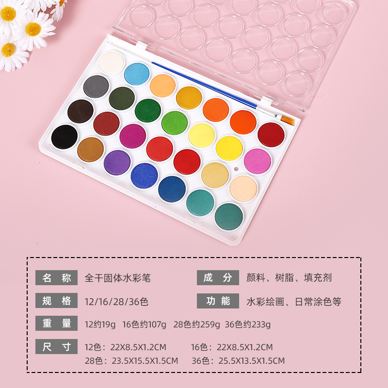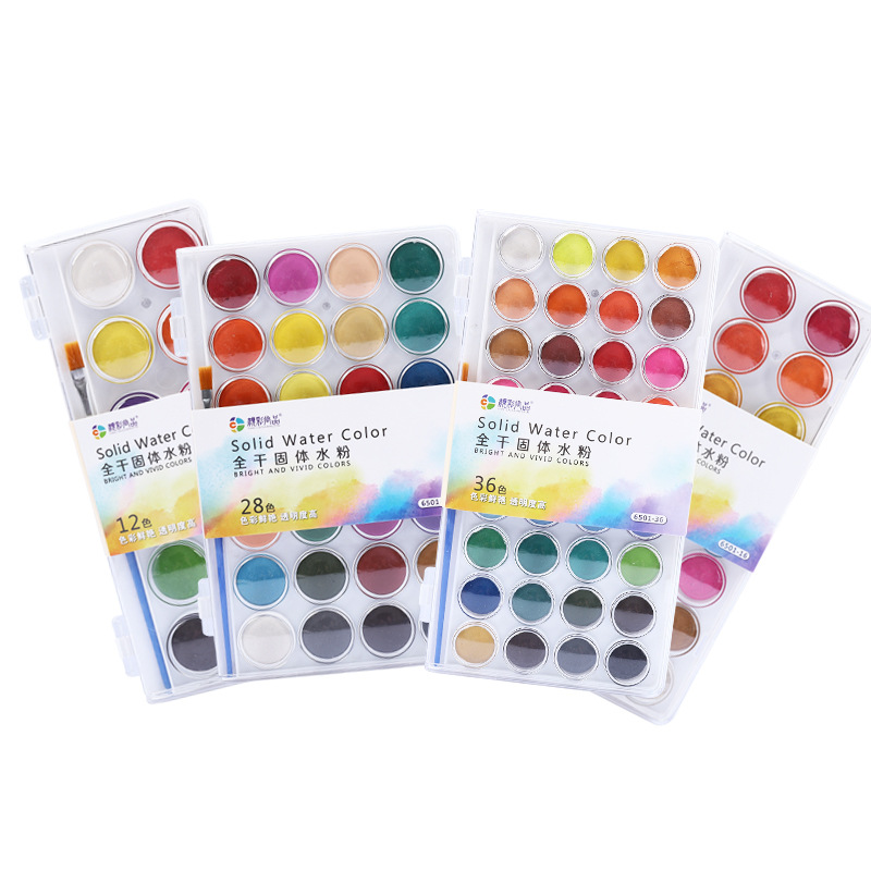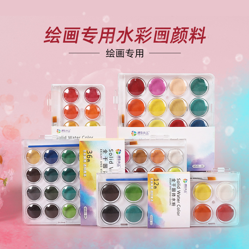 初学固体水粉水彩颜料粉饼套装透明固体水彩可水洗便携式手绘颜料