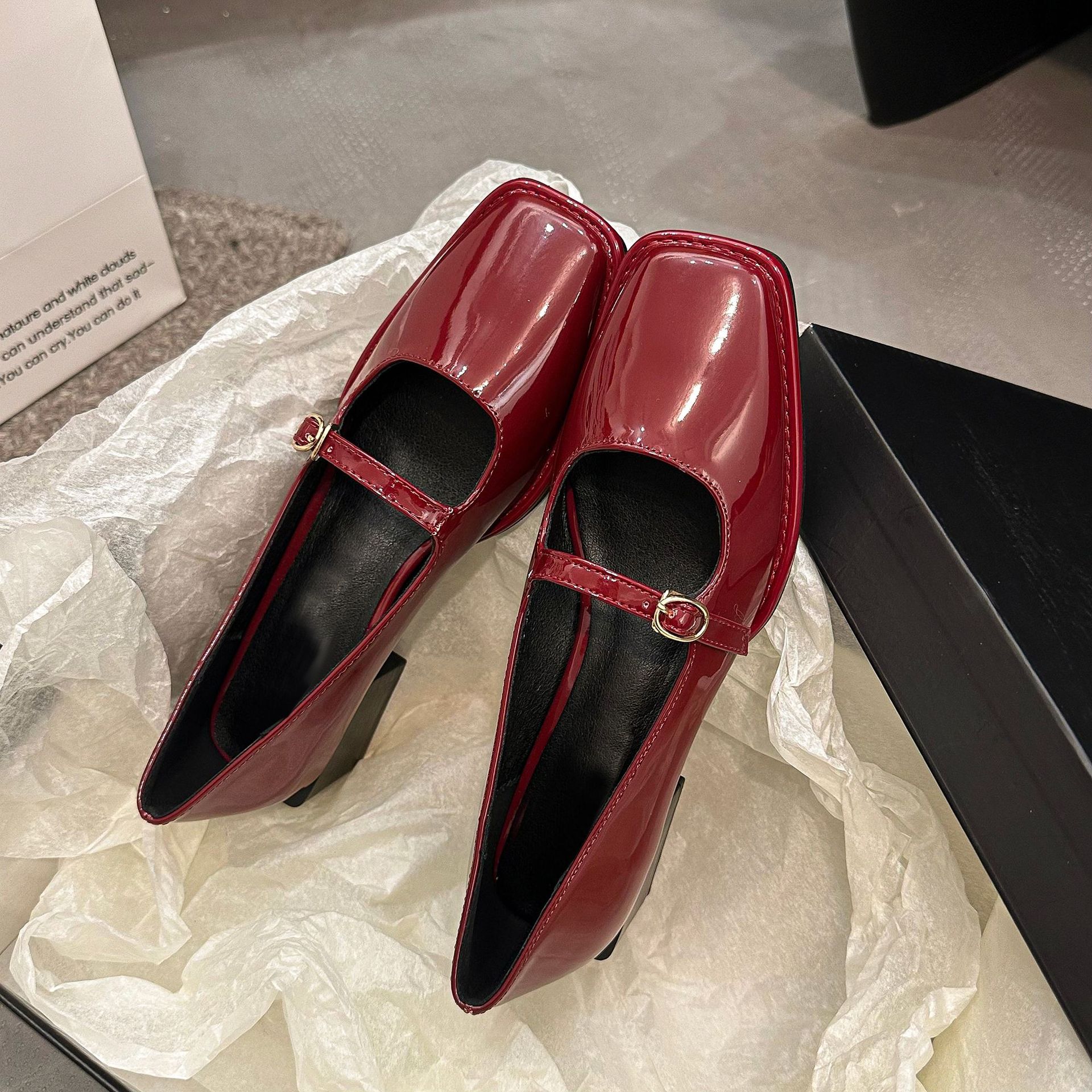 法式复古中跟玛丽珍女鞋气质一字扣带粗跟单鞋红色小皮鞋