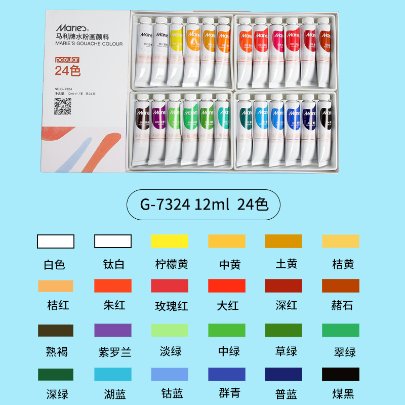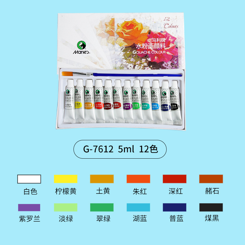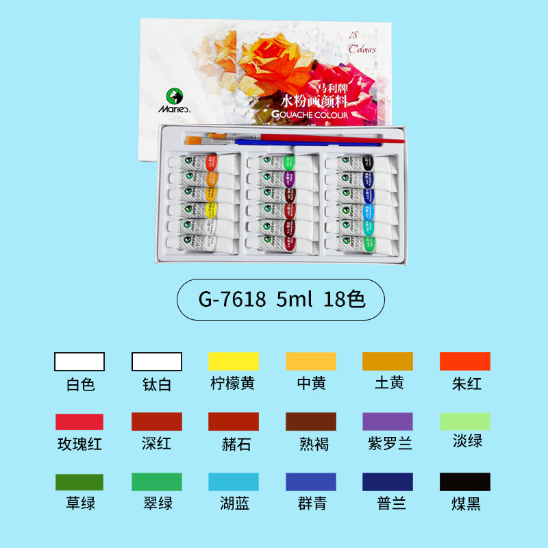 马利水粉颜料套装12色18色24色5ml12ml盒装绘画美术颜料