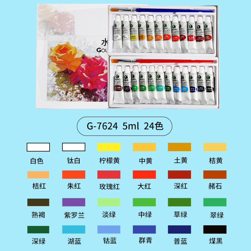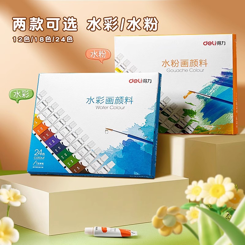 水彩水粉画颜料套装工具画画初学者儿童24色幼儿园学生绘画笔