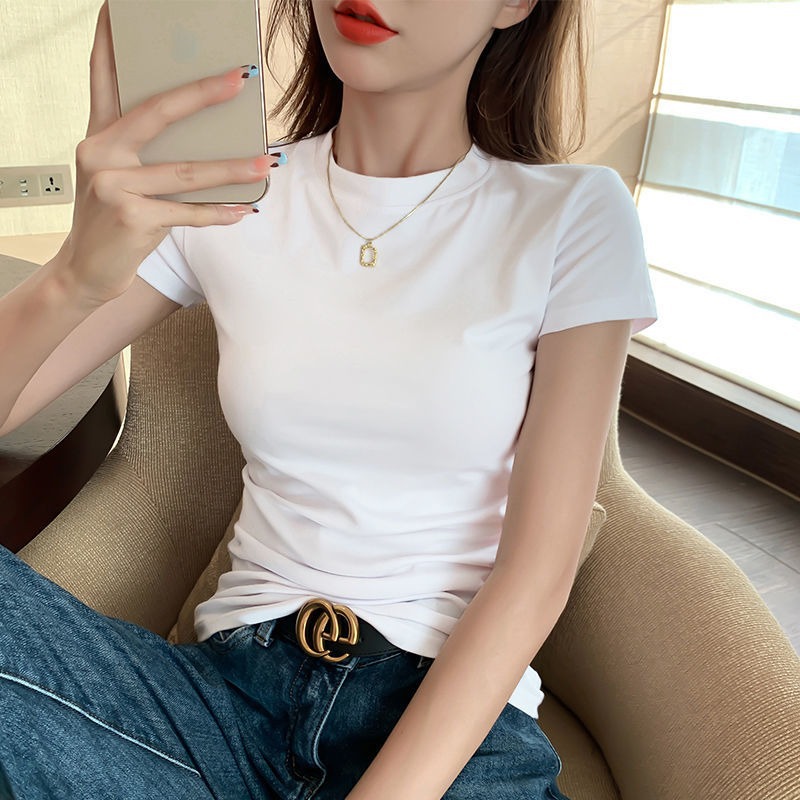 美式复古正肩短袖T恤女夏季新款修身显瘦设计感百搭体桖半袖上衣