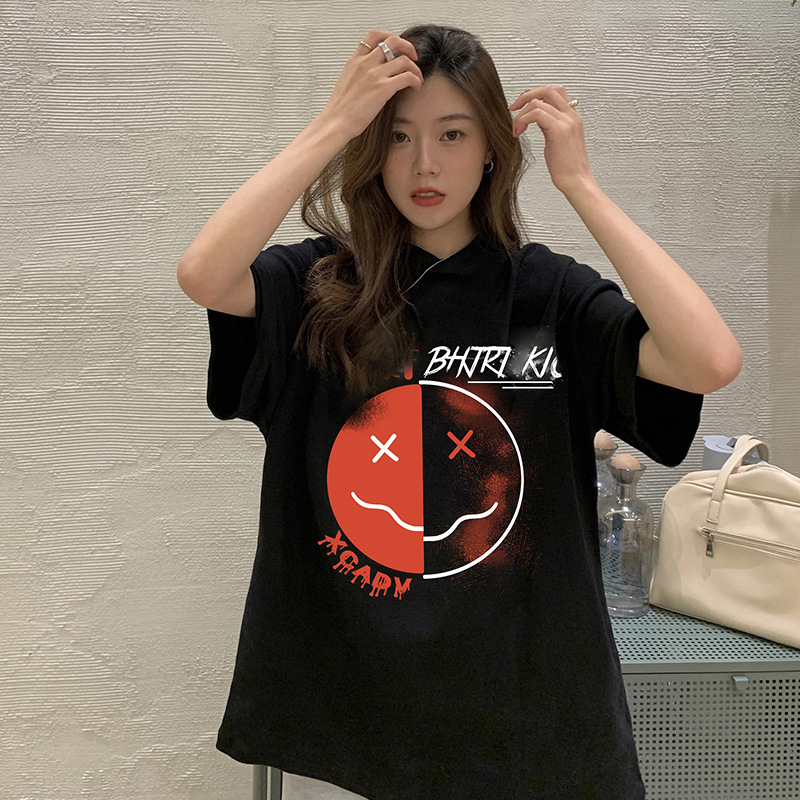 夏季设计感印花纯棉短袖T恤女新款宽松趣味搞怪情侣半袖上衣