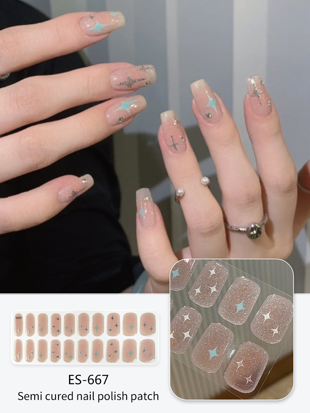 【ES667】20指半固化凝胶uv半烤美甲贴指甲贴片照灯变硬