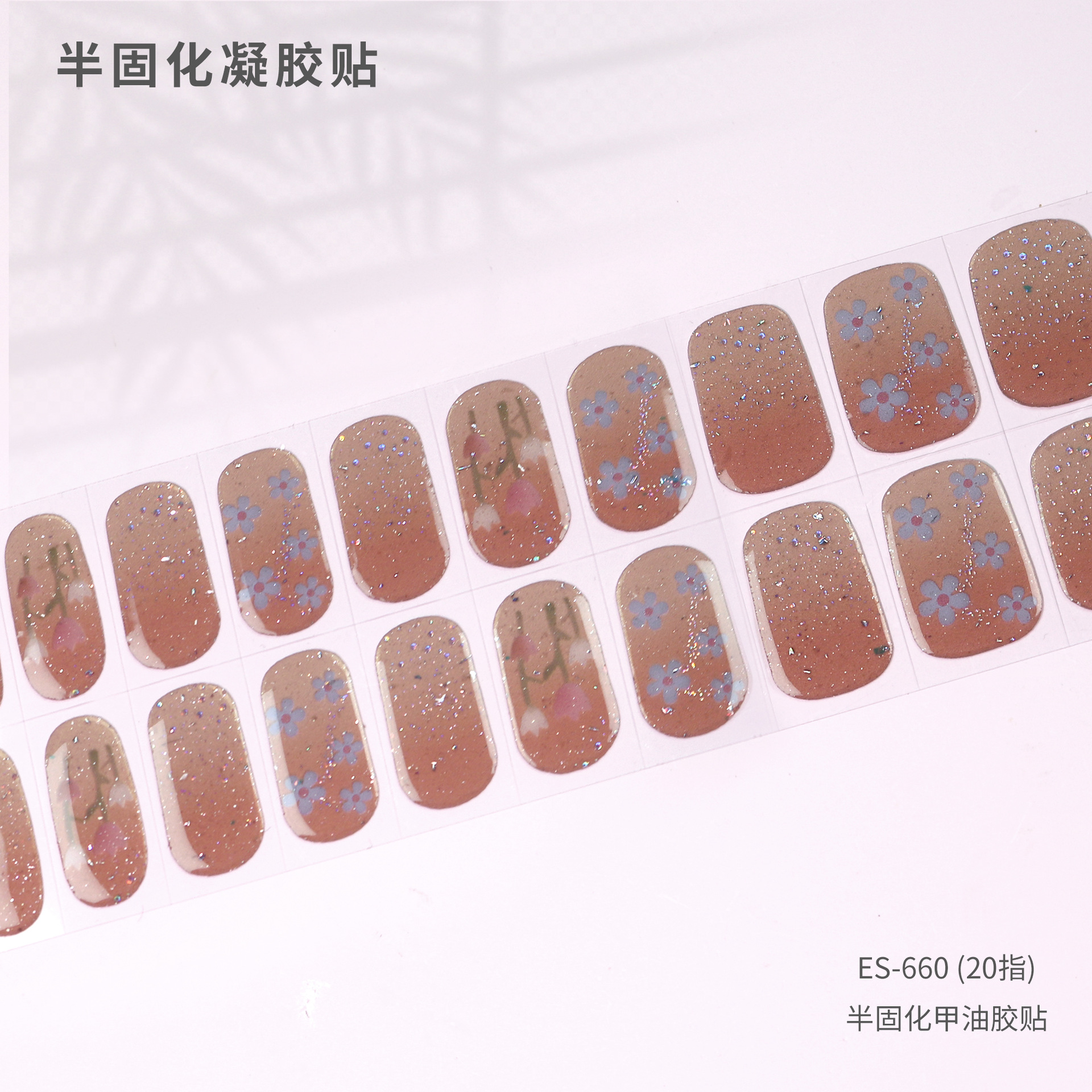 【ES660】20指半固化凝胶uv半烤美甲贴指甲贴片照灯变硬