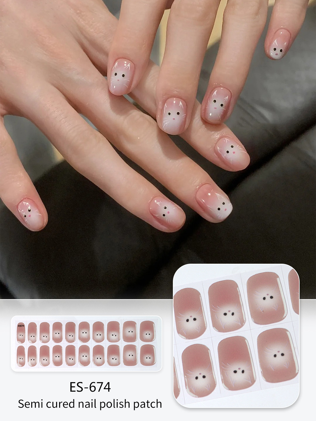 【ES674】20指半固化凝胶uv半烤美甲贴指甲贴片照灯变硬