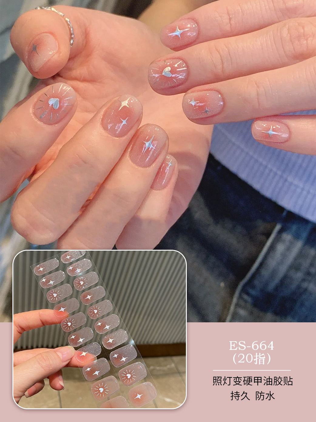 【ES664】20指半固化凝胶uv半烤美甲贴指甲贴片照灯变硬