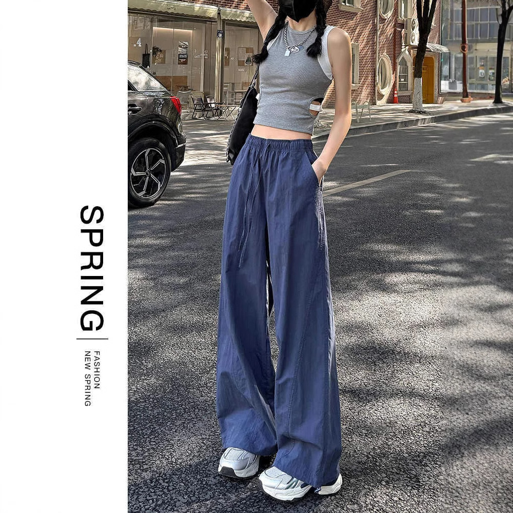 美式速干工装裤女款春秋空气感蓬蓬呼吸裤子松弛感宽松阔腿运动裤