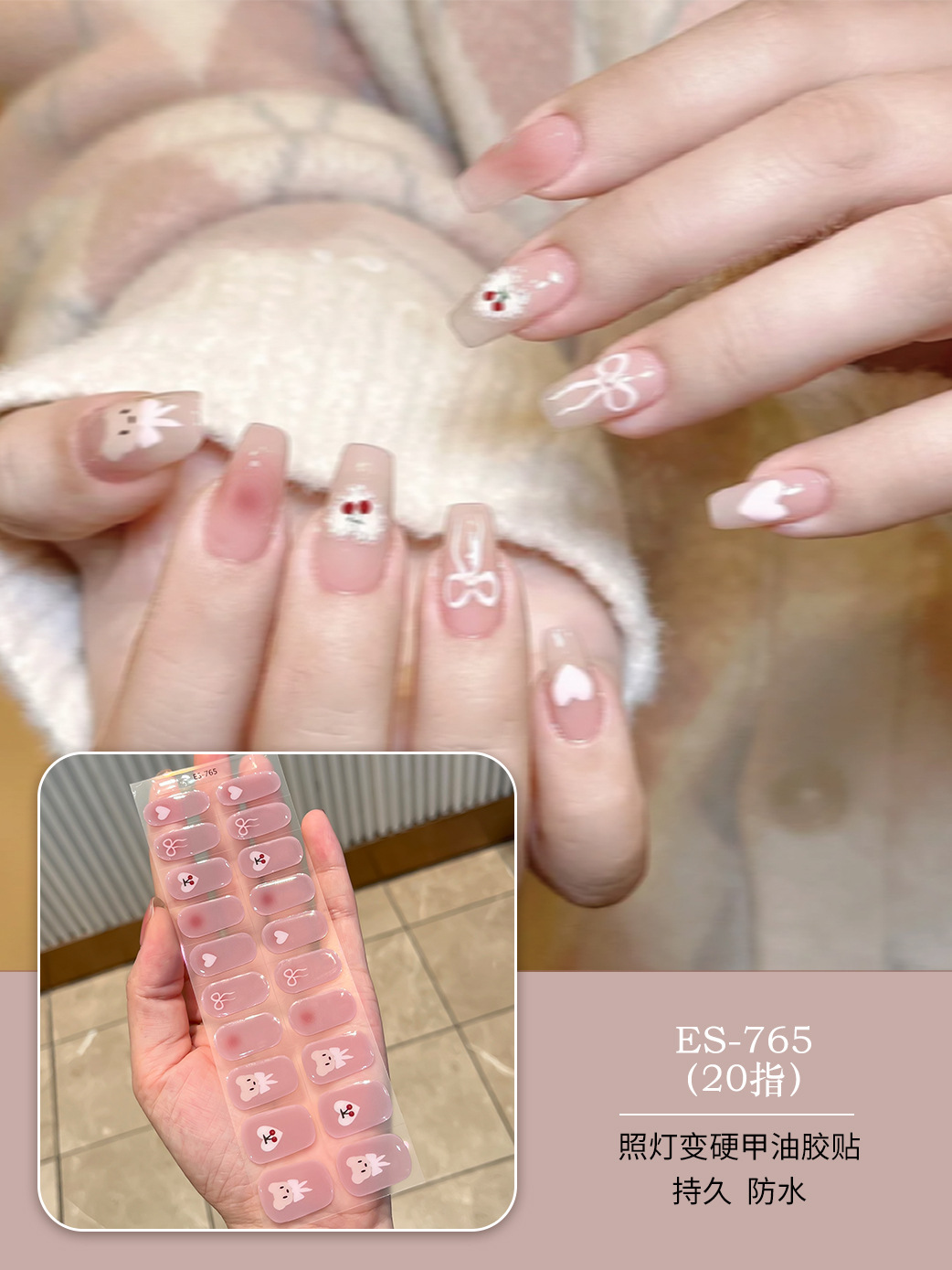 【ES765】20指半固化凝胶uv半烤美甲贴指甲贴片照灯变硬