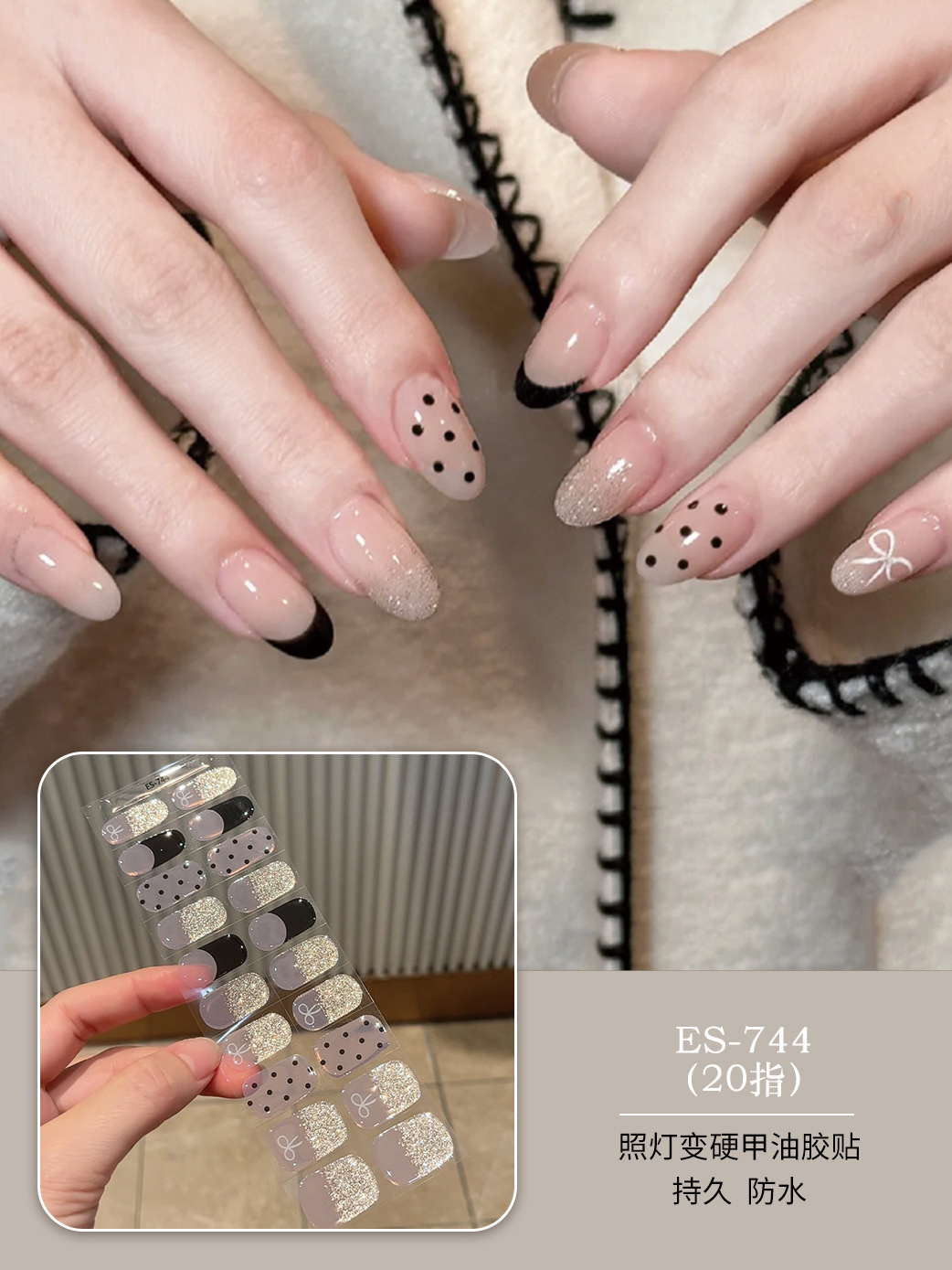 【ES744】20指半固化凝胶uv半烤美甲贴指甲贴片照灯变硬