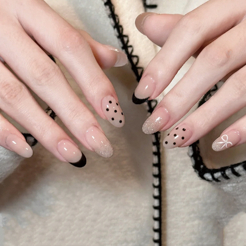 纯手工美甲穿戴甲假指甲贴片秋冬新款摩卡爆闪香槟钻金箔法式短款