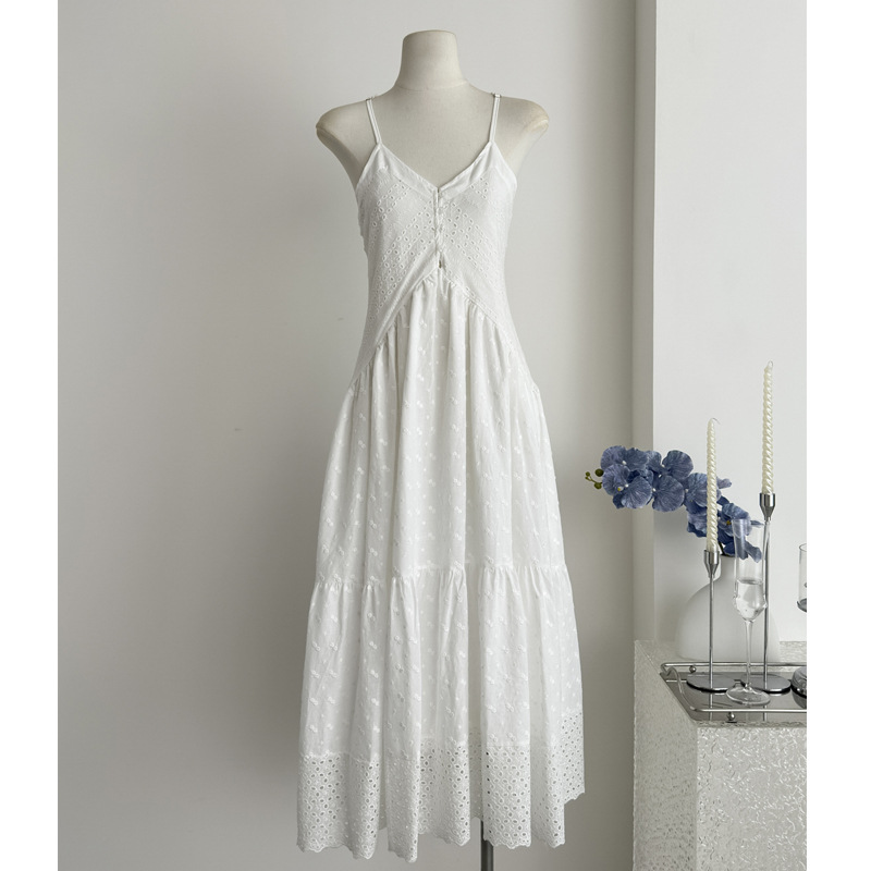 靓依轩【满级白月光】仙女神裙 重工刺绣纯棉白色连衣裙女夏季新