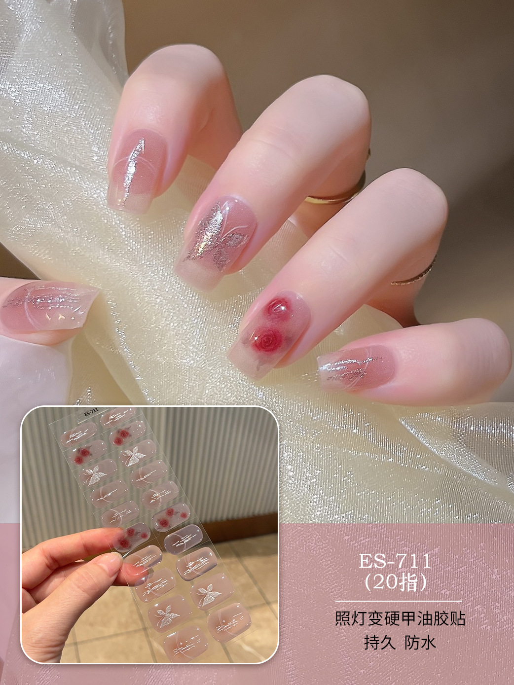 【ES711】20指半固化凝胶uv半烤美甲贴指甲贴片照灯变硬