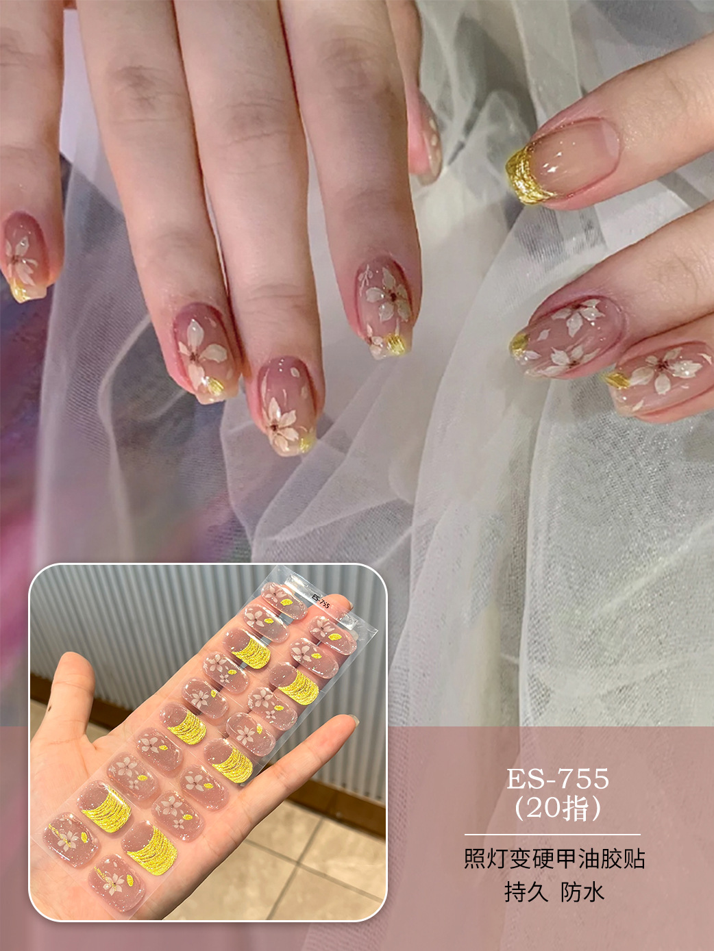 【ES755】20指半固化凝胶uv半烤美甲贴指甲贴片照灯变硬