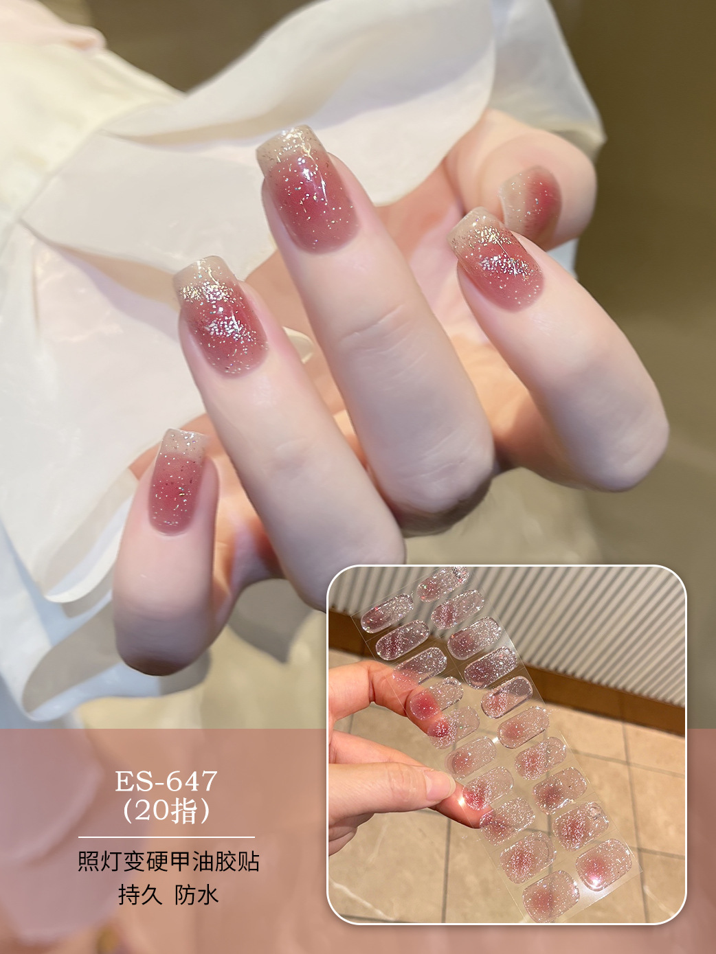 【ES647】20指半固化凝胶uv半烤美甲贴指甲贴片照灯变硬