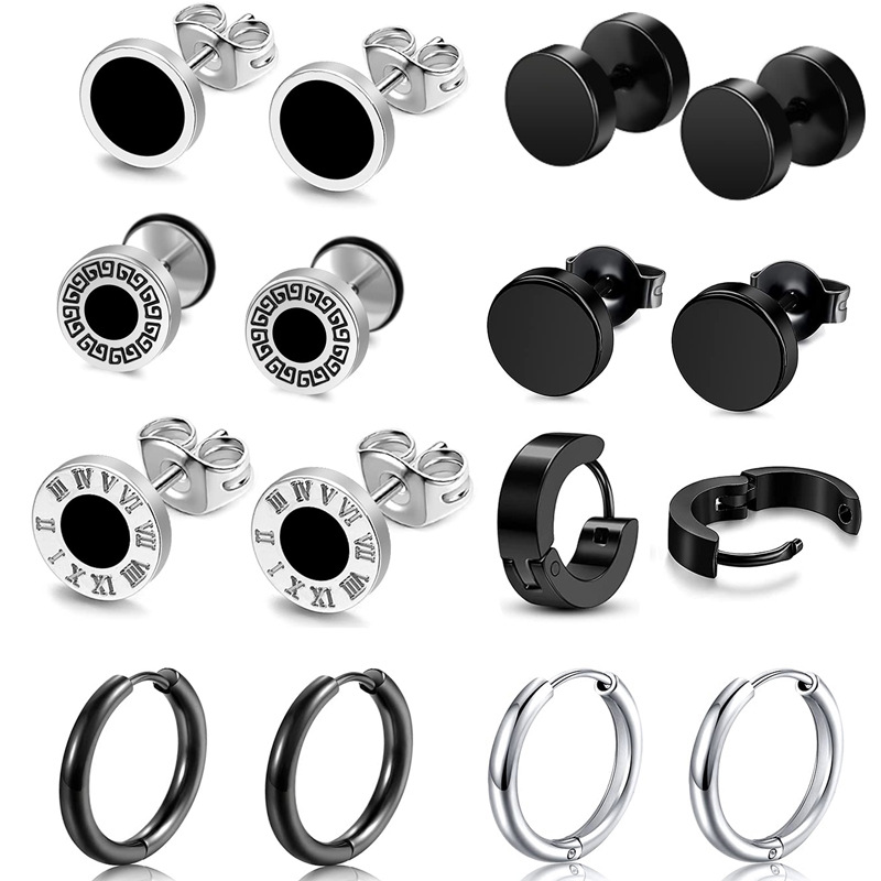不锈钢耳钉套装亚马逊男士耳环个性哑铃黑色耳圈跨境热卖套装