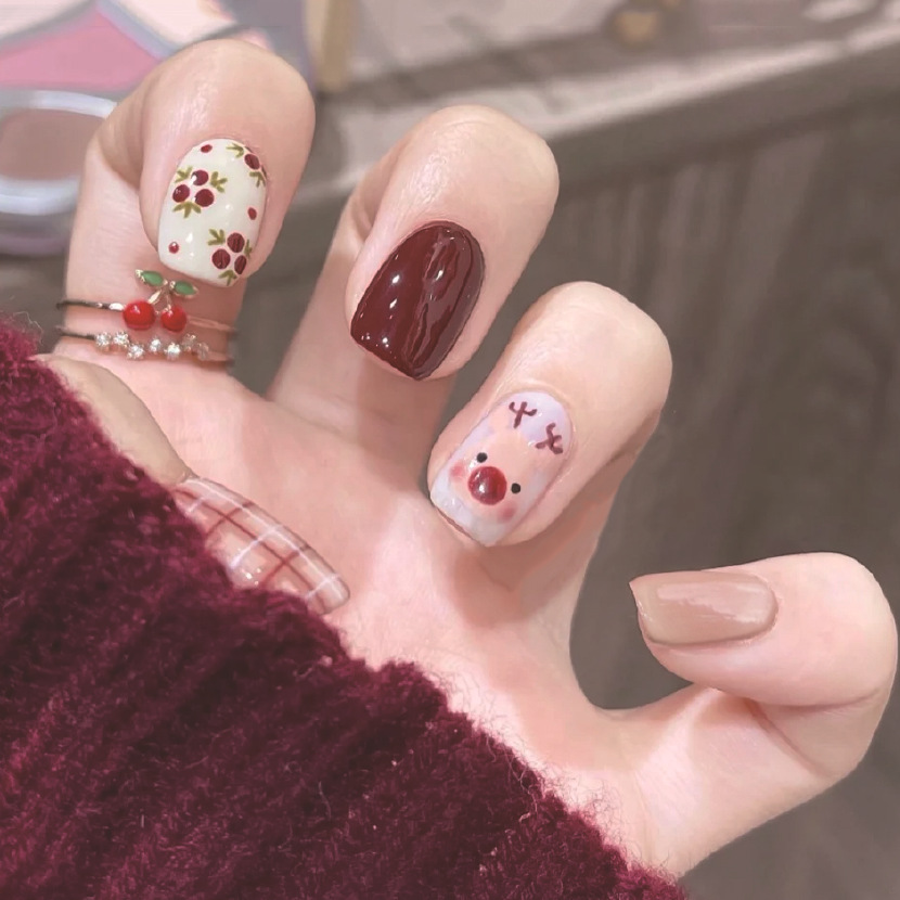 手工穿戴甲樱桃红欧美辣妹红色冰透法式显白立体樱桃可拆卸穿戴甲