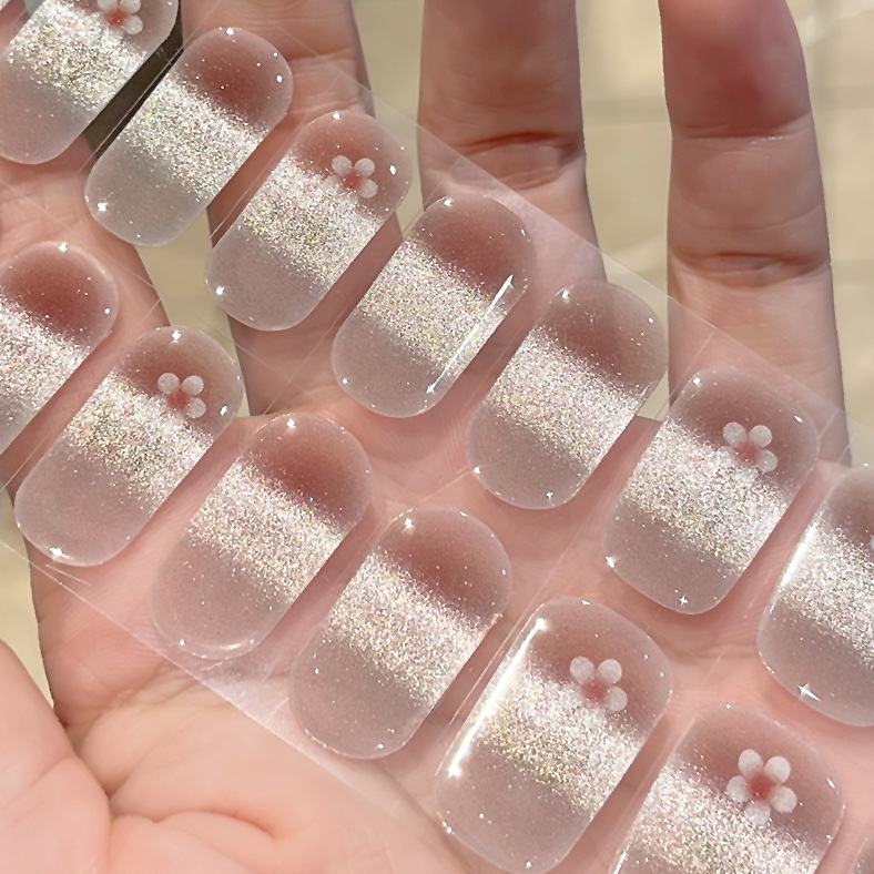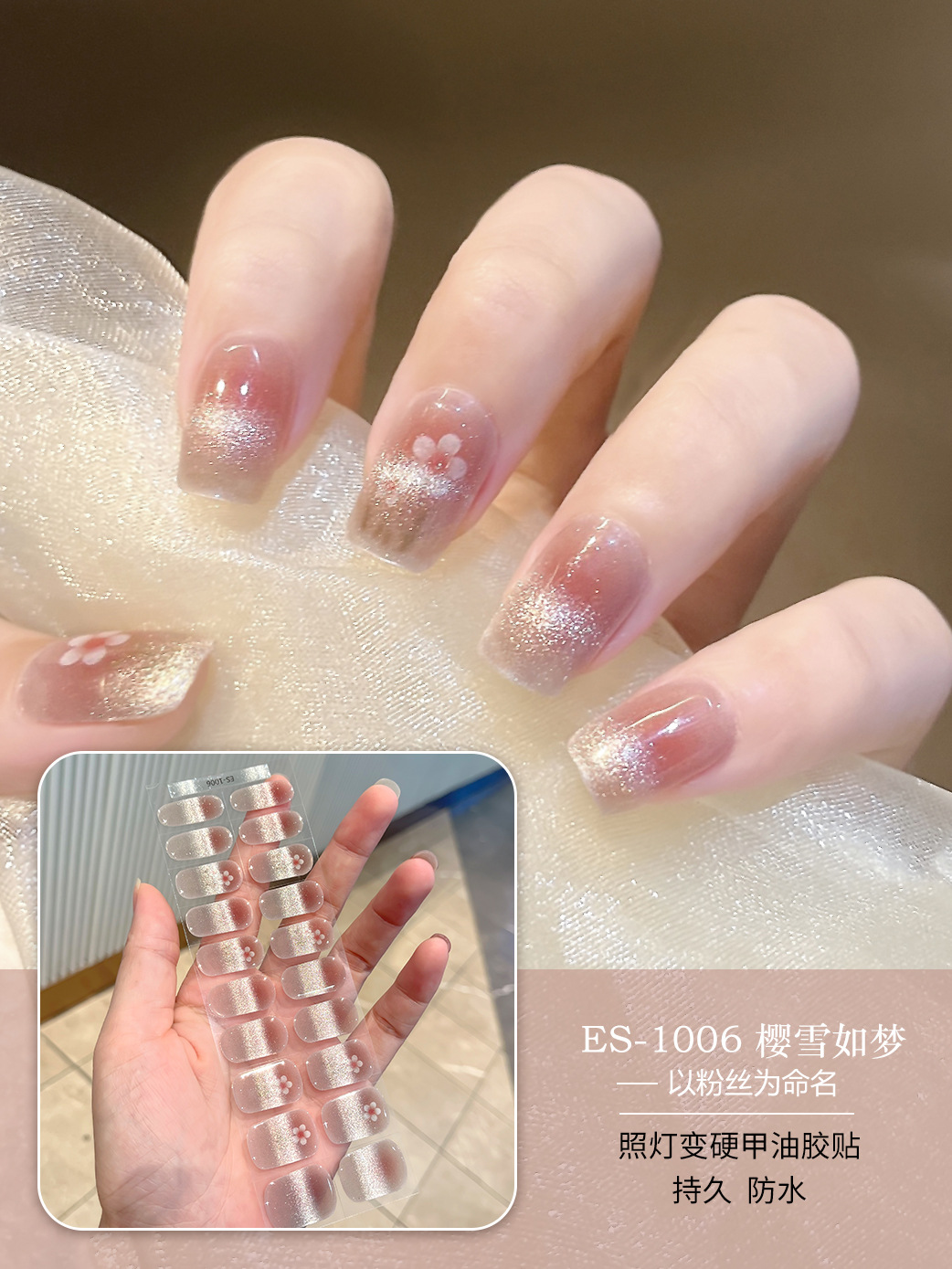 【ES1006猫眼】20指半固化凝胶uv半烤美甲贴指甲贴片照灯变硬