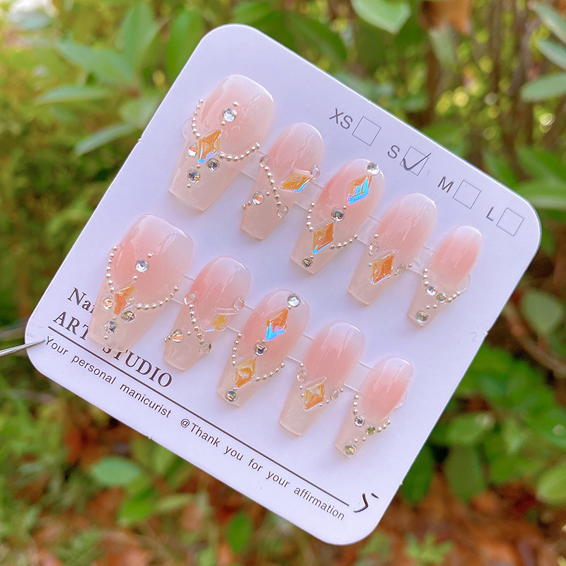 穿戴甲纯手工美甲成品假指甲贴片钢珠爆闪方钻晶石猫眼渐变水滴甲