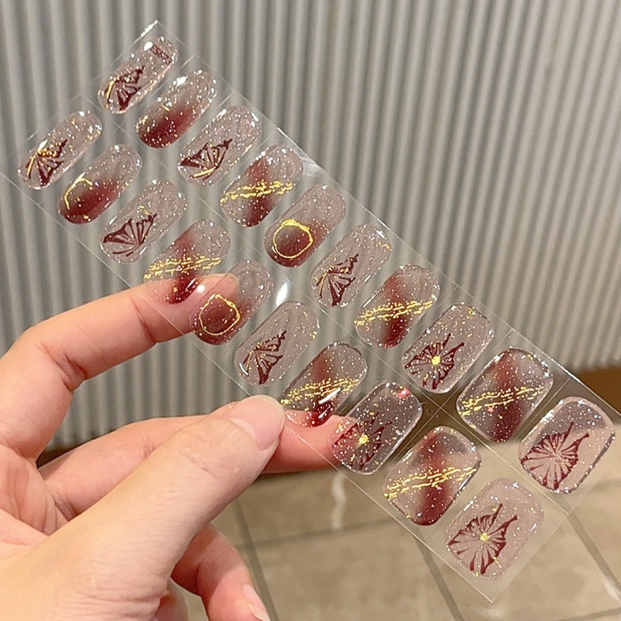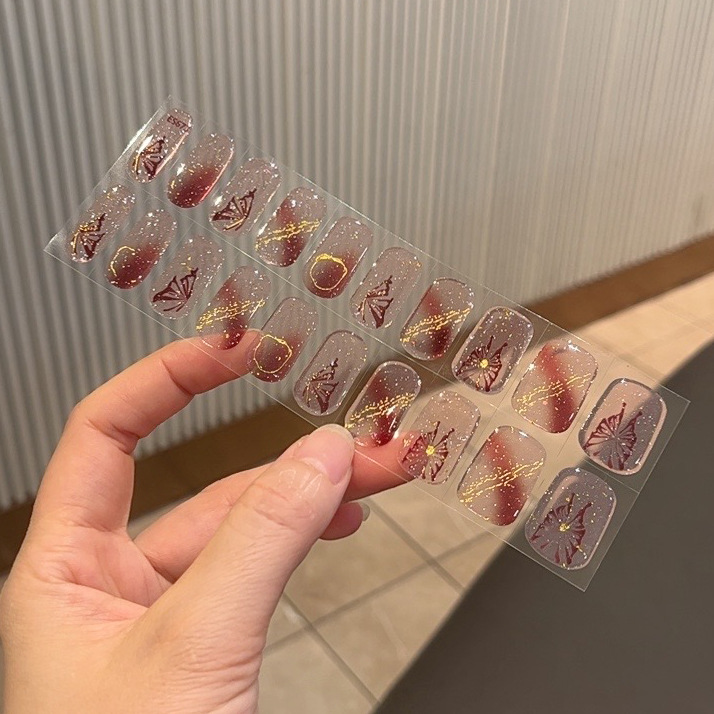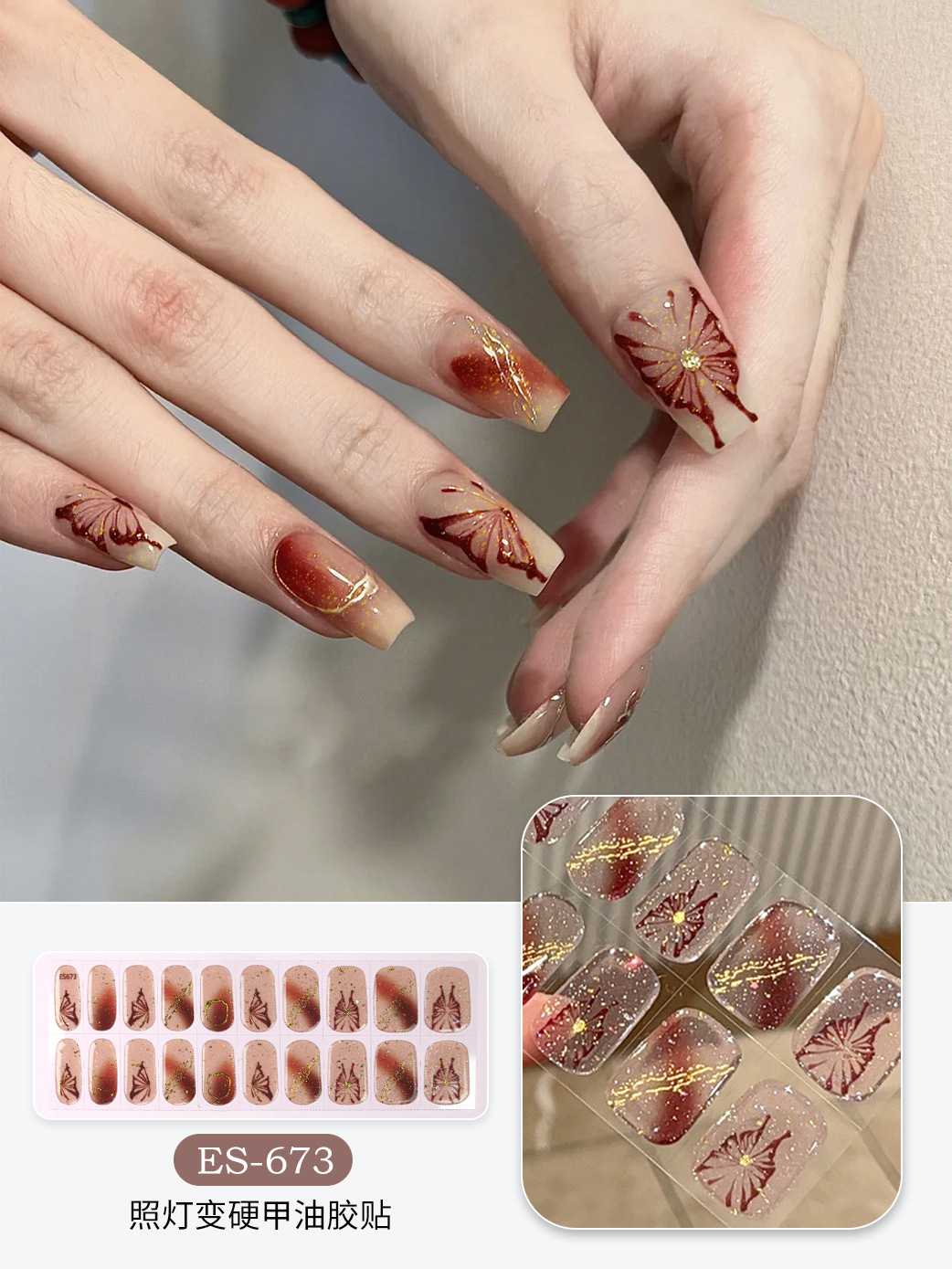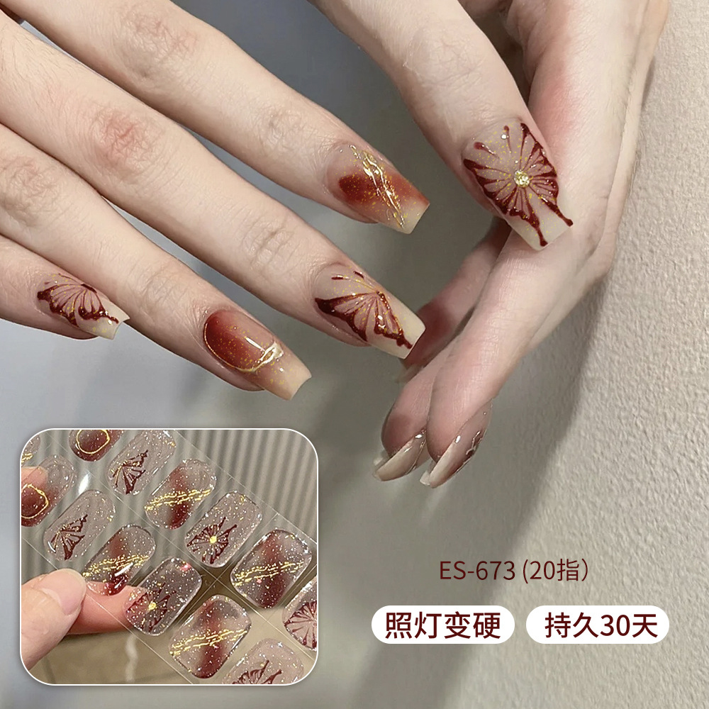 【ES673】20指半固化凝胶uv半烤美甲贴指甲贴片照灯变硬