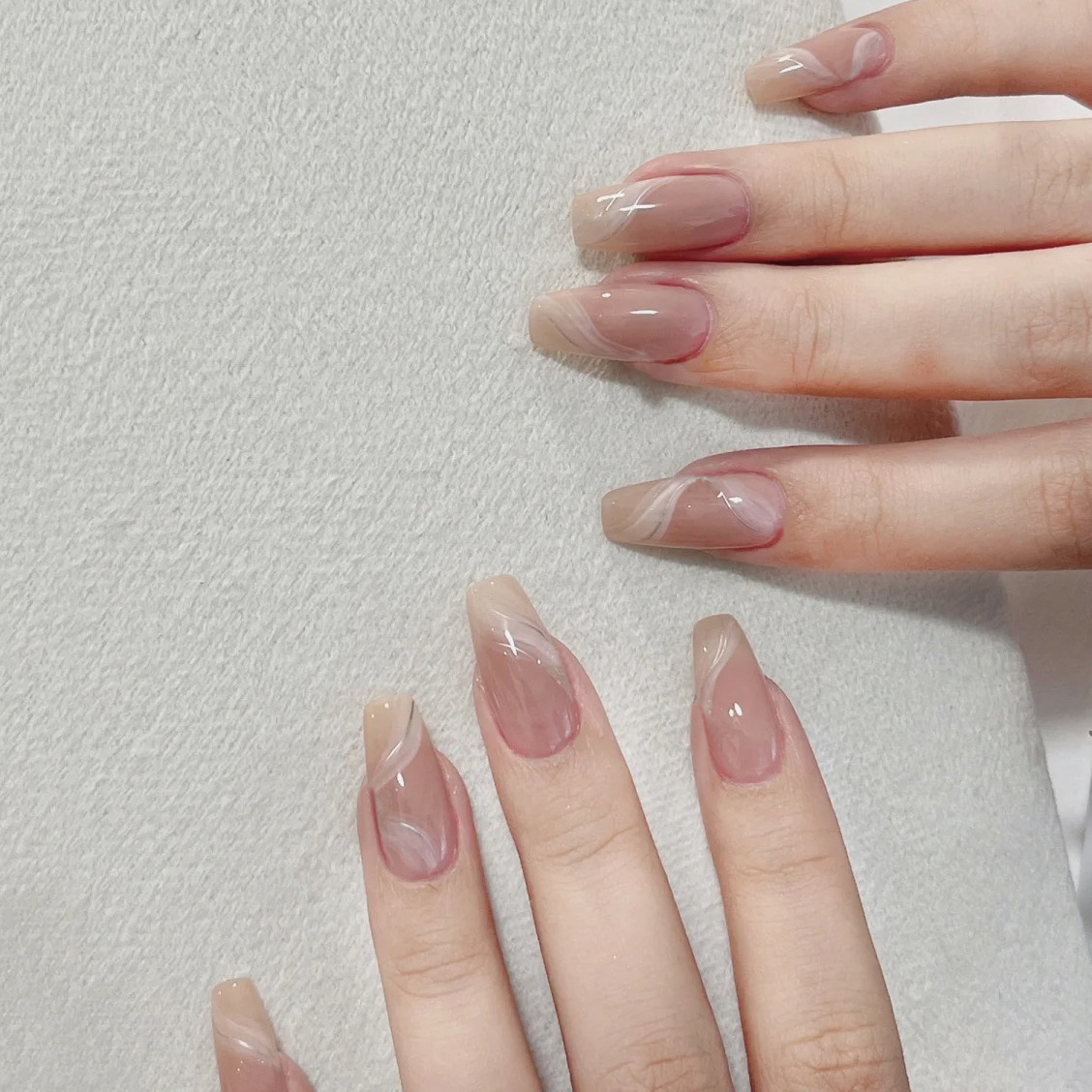 纯手工穿戴甲甜美可爱简约气质温柔渐变粉显白美甲贴片成品批发