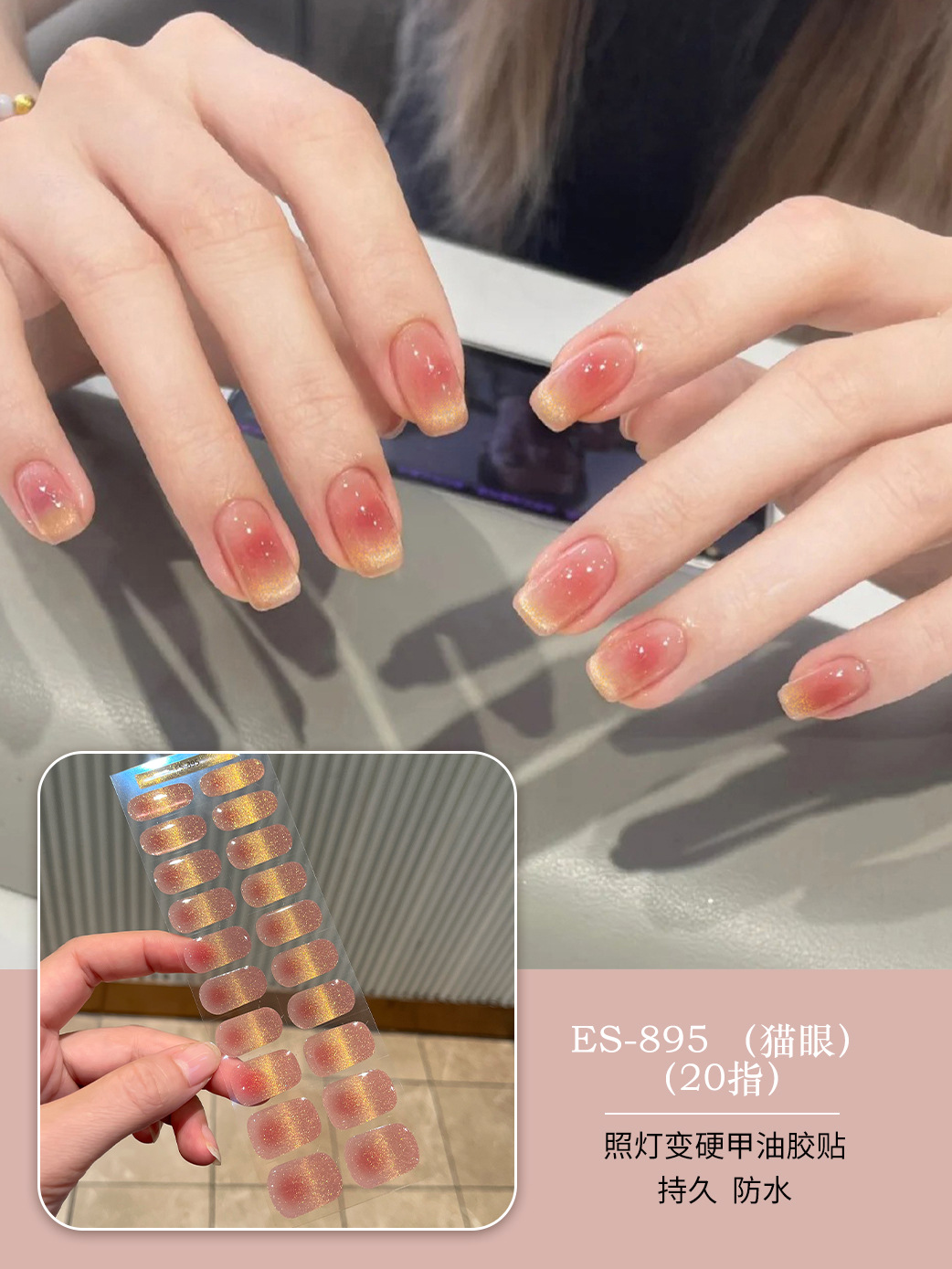 【ES895猫眼】20指半固化凝胶uv半烤美甲贴指甲贴片照灯变硬