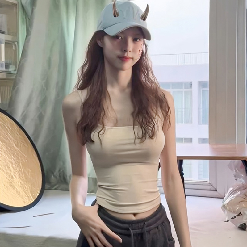 白色吊带背心女夏季内搭2025新款修身性感外穿带胸垫无袖打底上衣