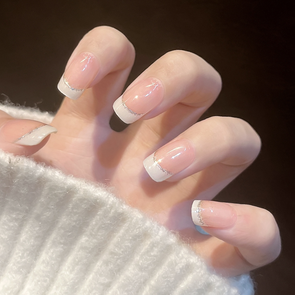 纯手工穿戴甲爱心贴钻爆闪光疗甲鸳甲极简法式甲片可拆卸穿戴甲片