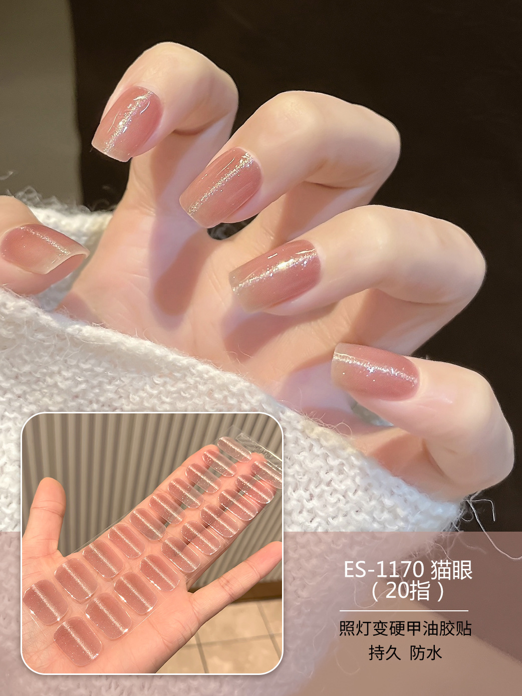 【ES1170猫眼】20指半固化凝胶uv半烤美甲贴指甲贴片照灯变硬