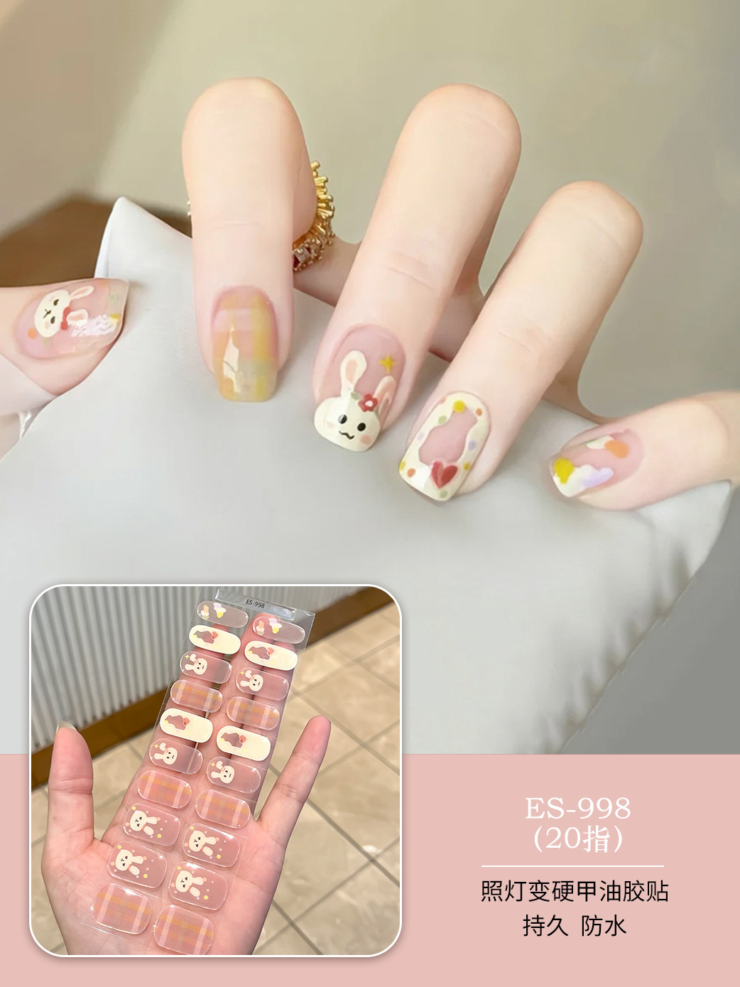 【ES998】20指半固化凝胶uv半烤美甲贴指甲贴片照灯变硬