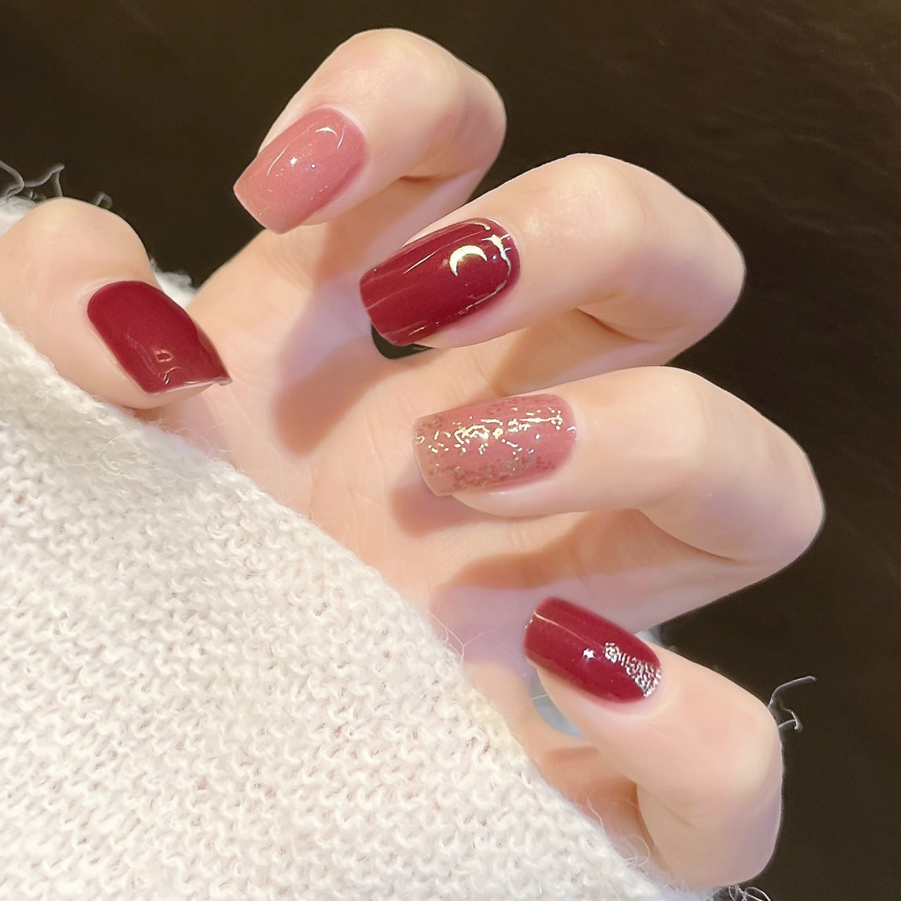 实拍穿戴甲手工美甲成品假指甲贴片甜酷辣妹星星法式秋冬穿戴甲