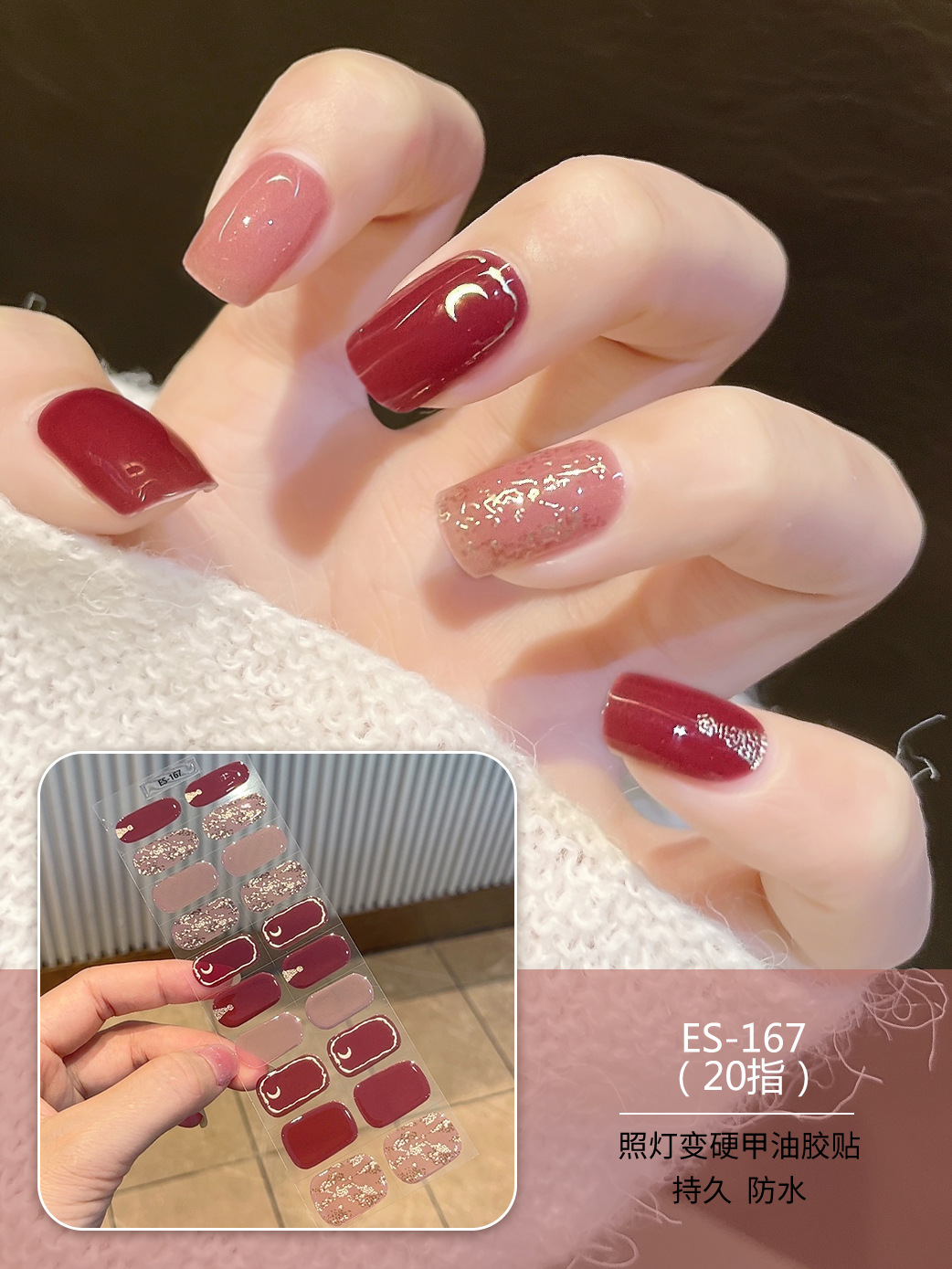 【ES167】20指半固化凝胶uv半烤美甲贴指甲贴片照灯变硬