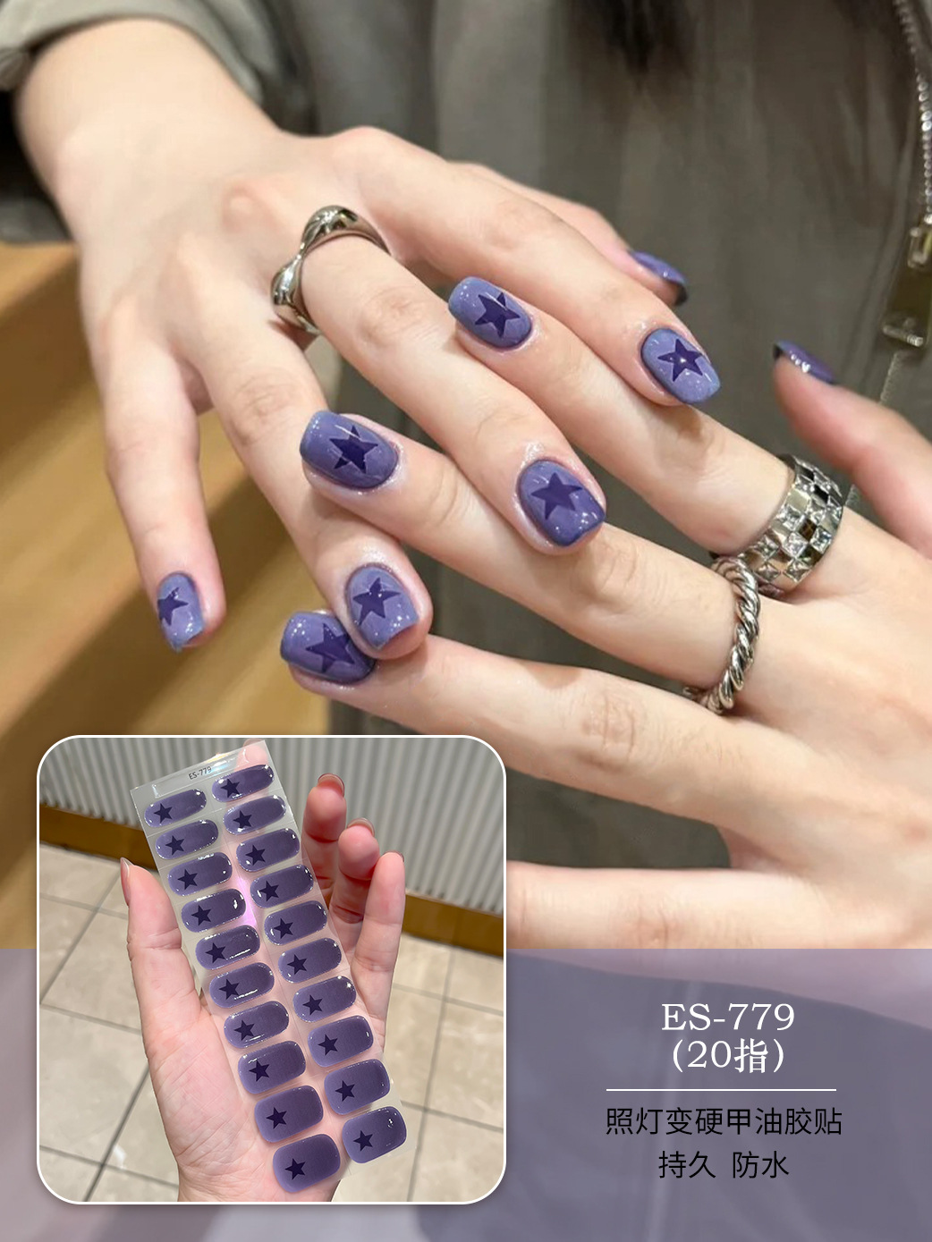 【ES779】20指半固化凝胶uv半烤美甲贴指甲贴片照灯变硬