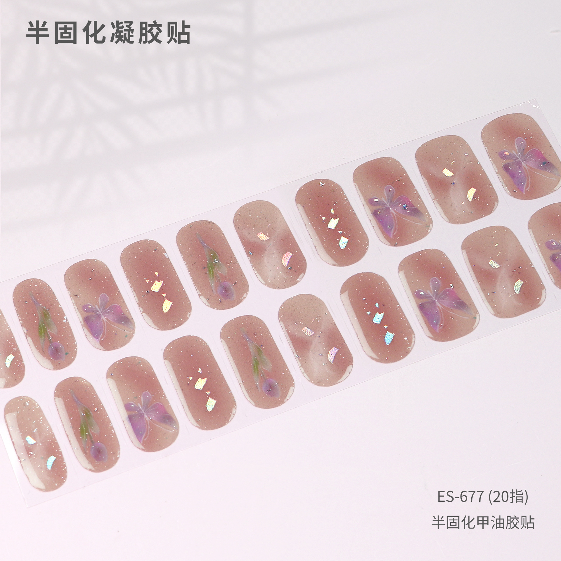 【ES677】20指半固化凝胶uv半烤美甲贴指甲贴片照灯变硬