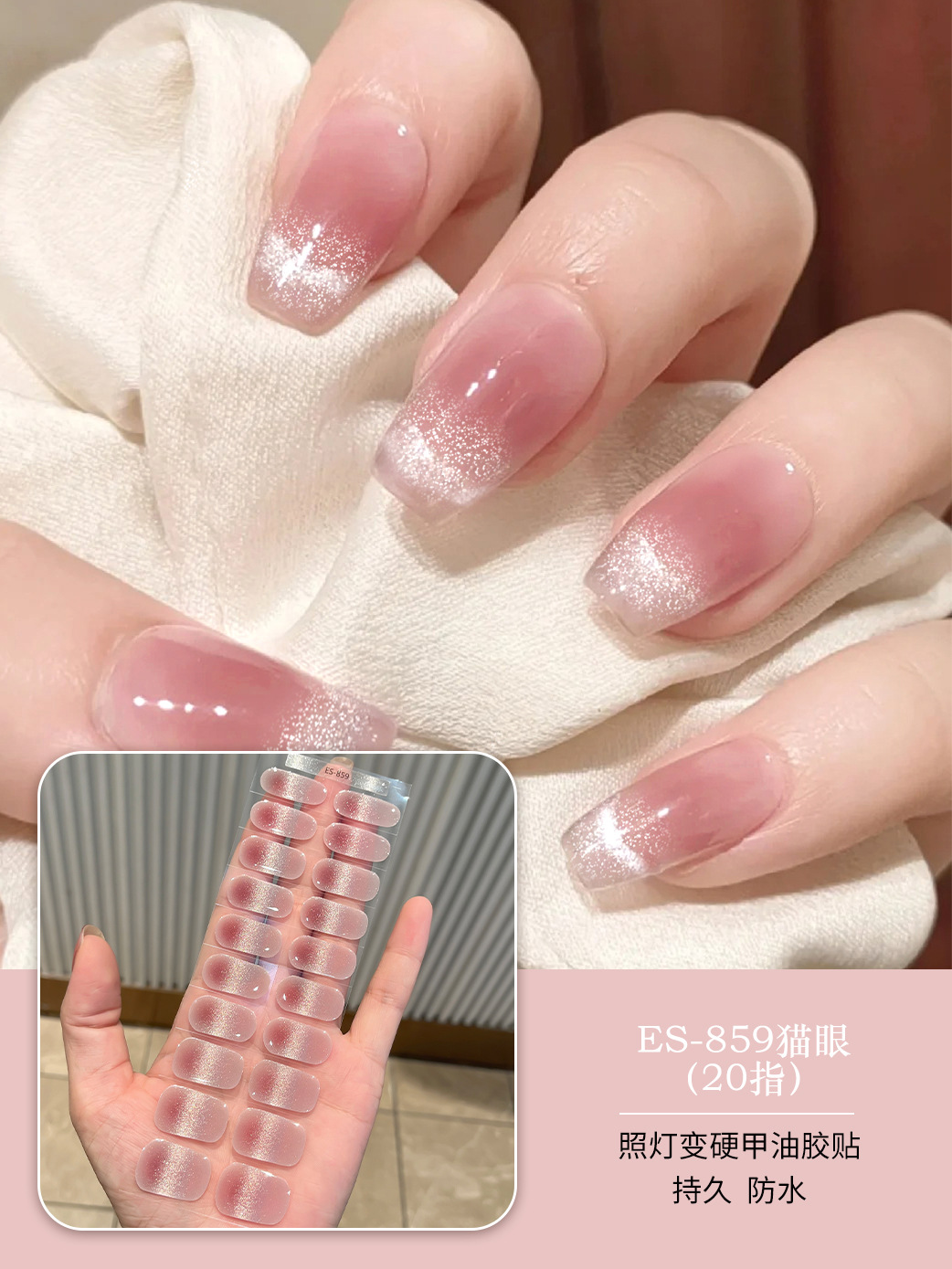 【ES859猫眼】20指半固化凝胶uv半烤美甲贴指甲贴片照灯变硬
