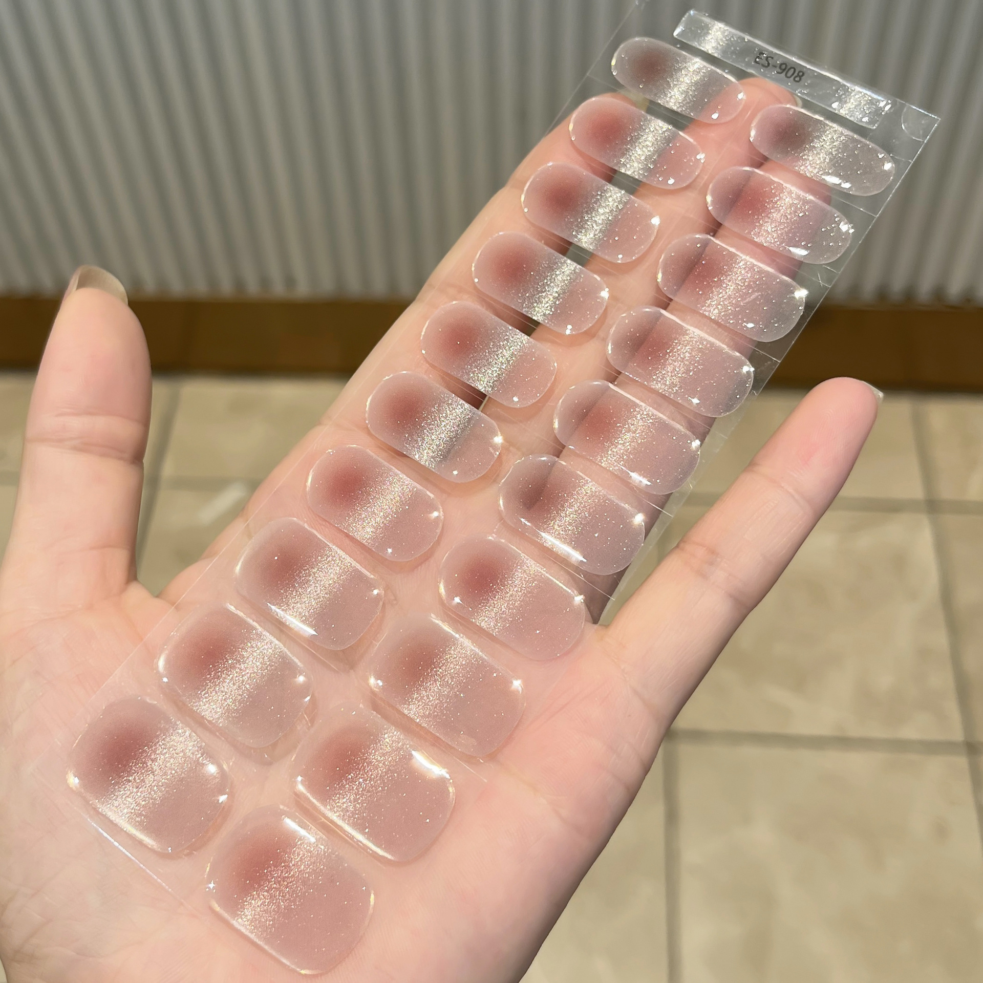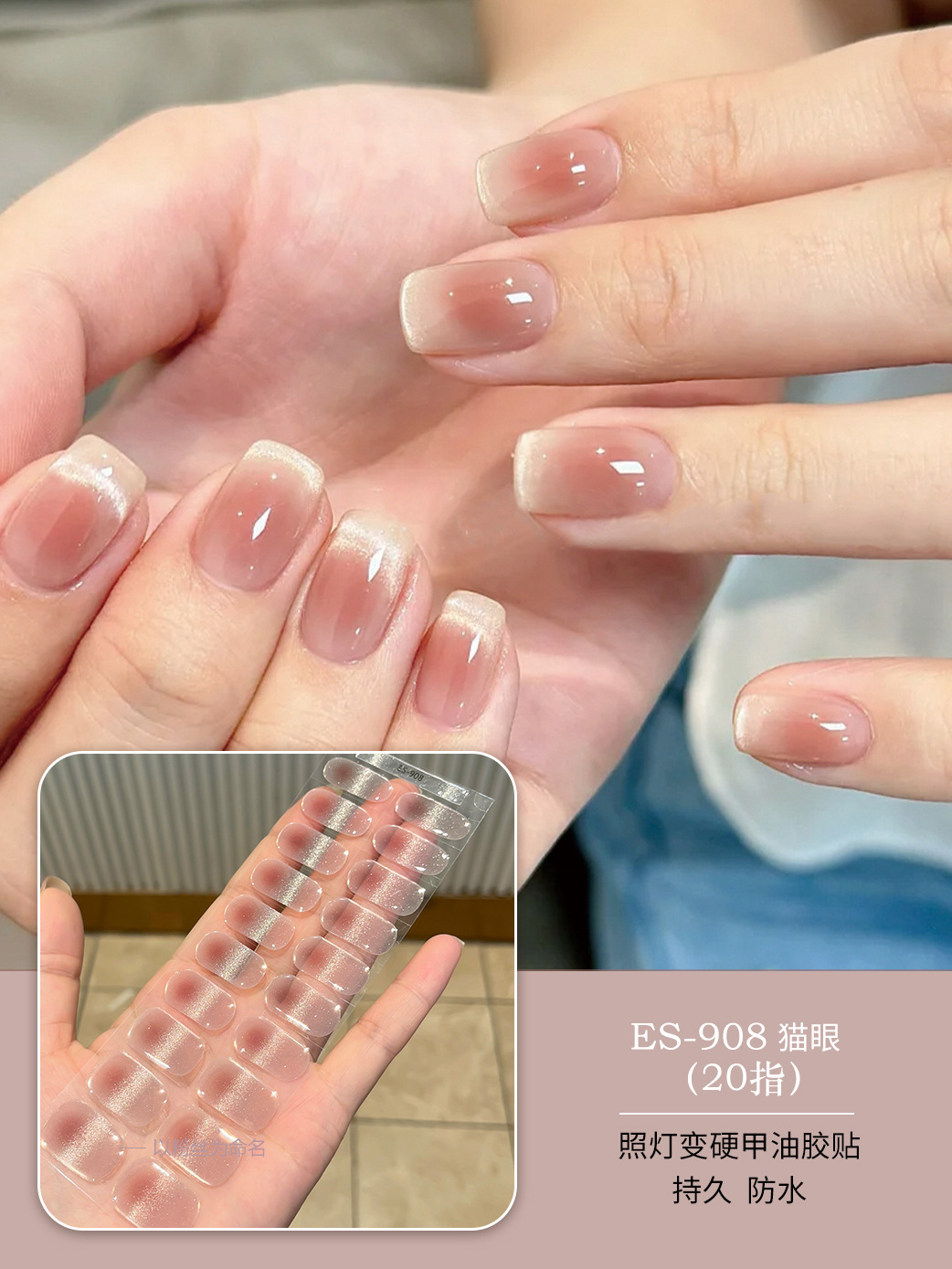 【ES908猫眼】20指半固化凝胶uv半烤美甲贴指甲贴片照灯变硬