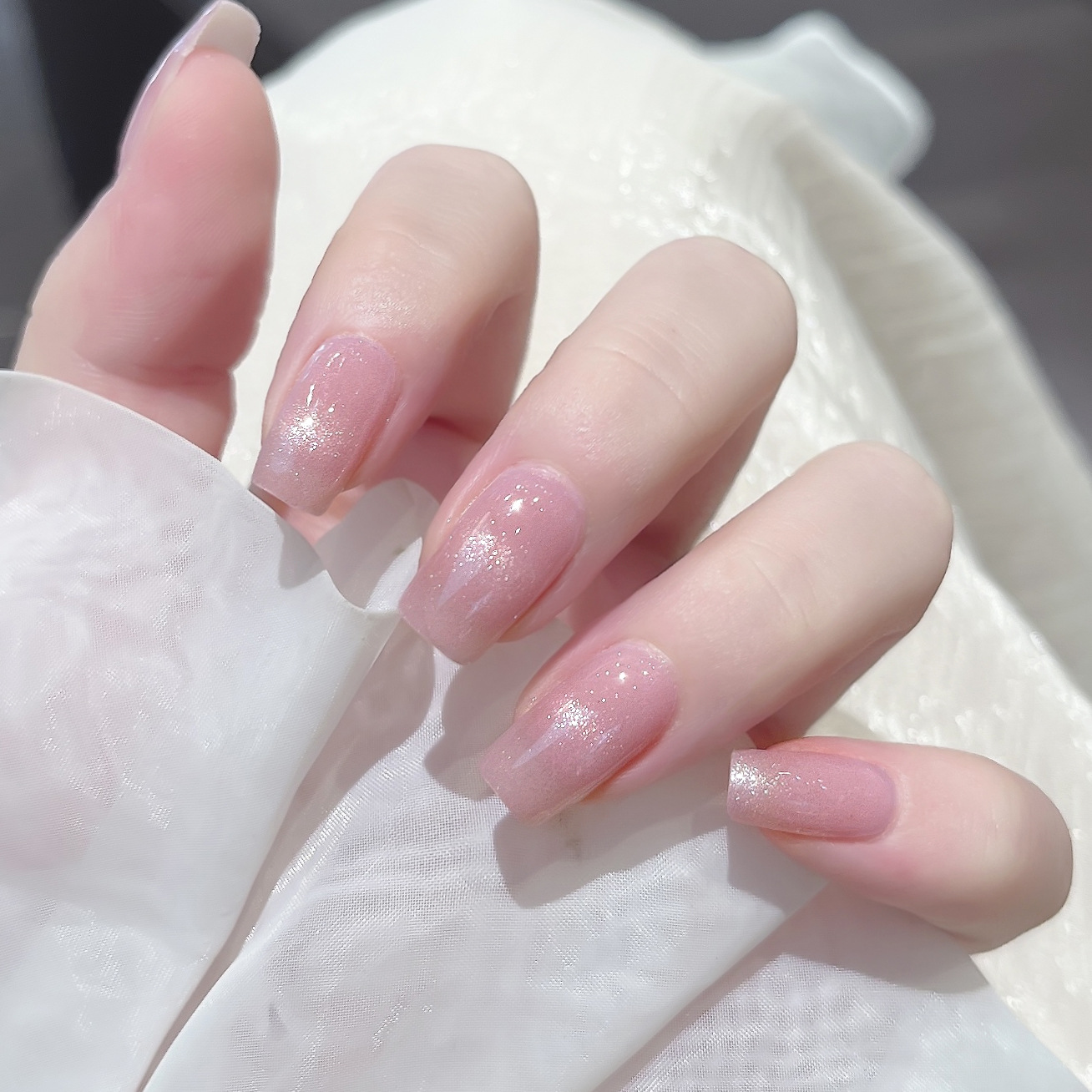 一只顾美甲 手工裸色渐变法式猫眼粉色碎钻堆钻小花月光信使贴片