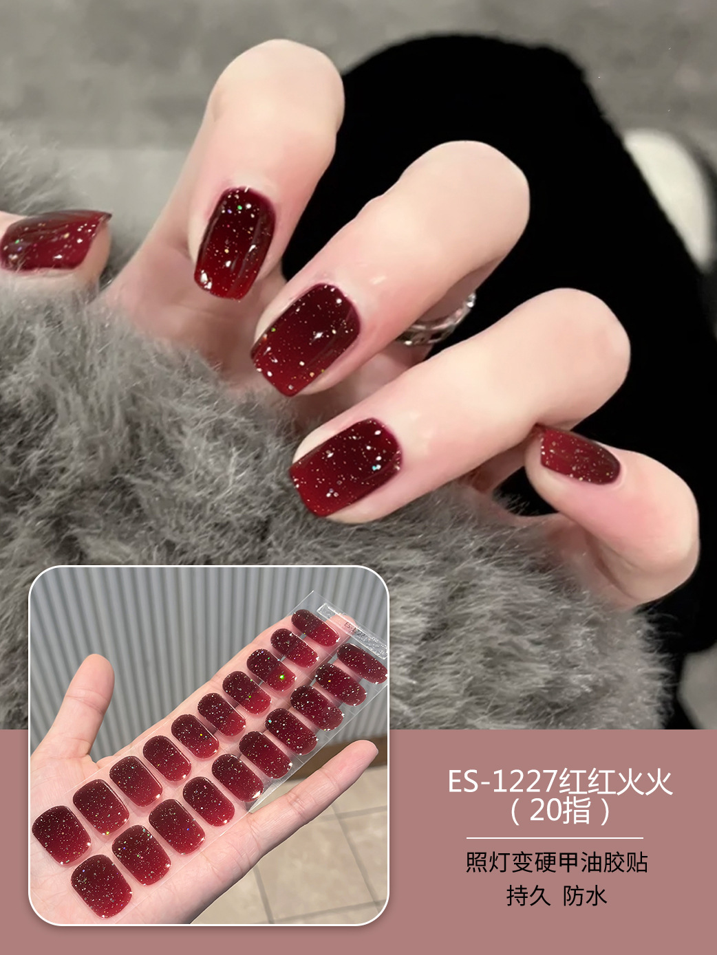 【ES1227】20指半固化凝胶uv半烤美甲贴指甲贴片照灯变硬