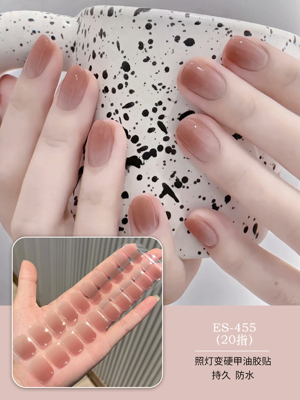 【ES455】20指半固化凝胶uv半烤美甲贴指甲贴片照灯变硬