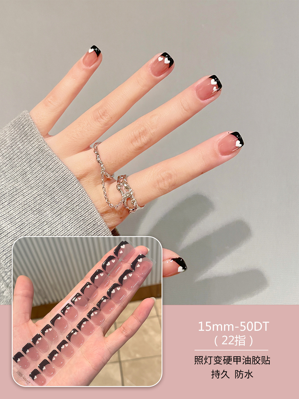 【15mm短甲型】50DT照灯变硬半固化uv凝胶美甲贴纸成品