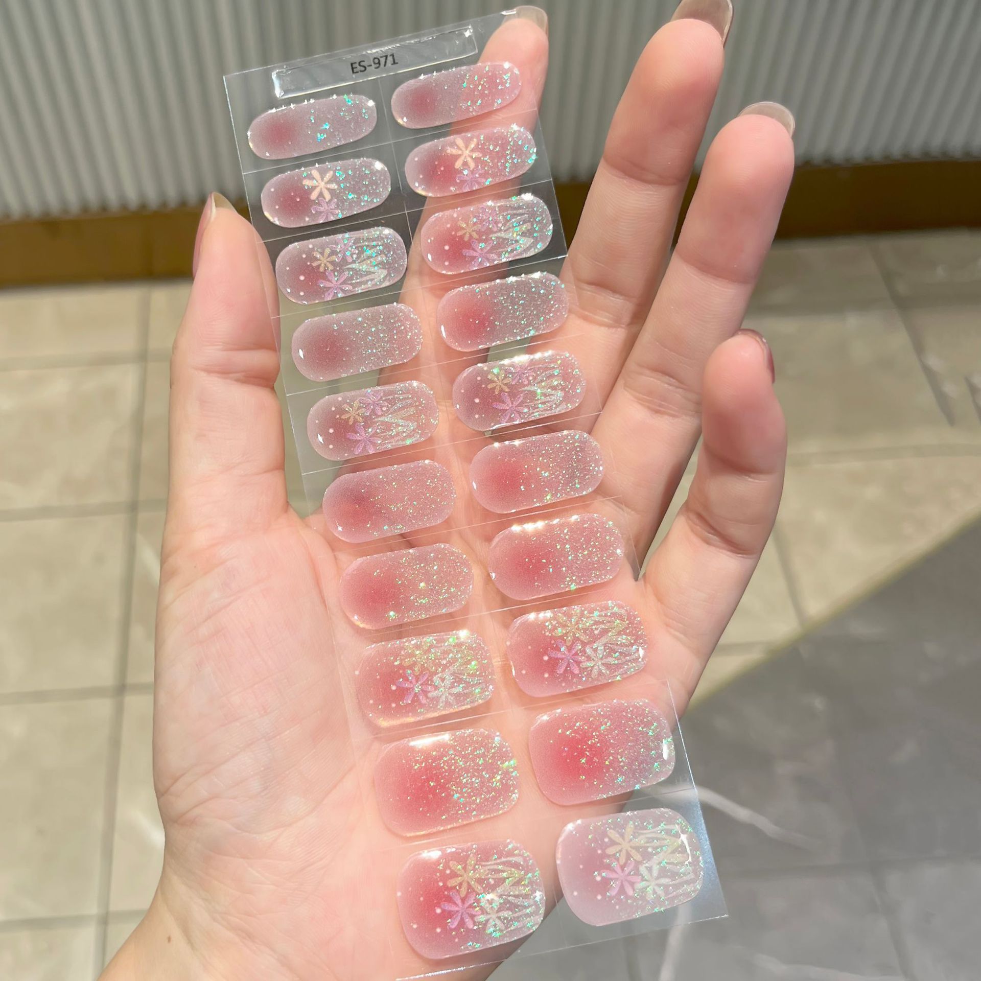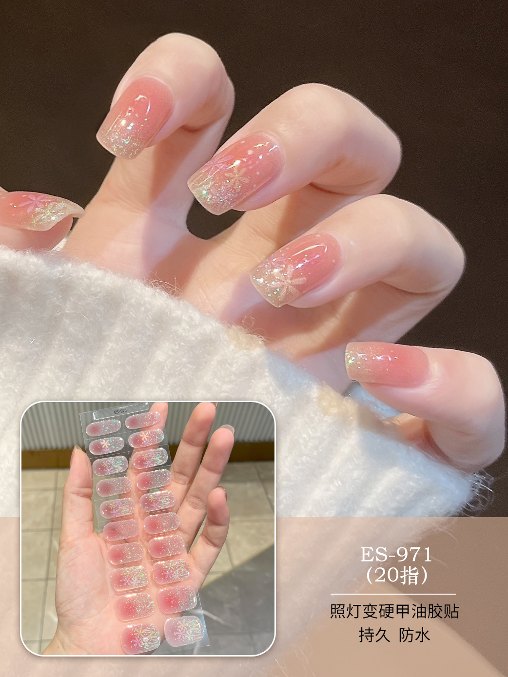 【ES971】20指半固化凝胶uv半烤美甲贴指甲贴片照灯变硬