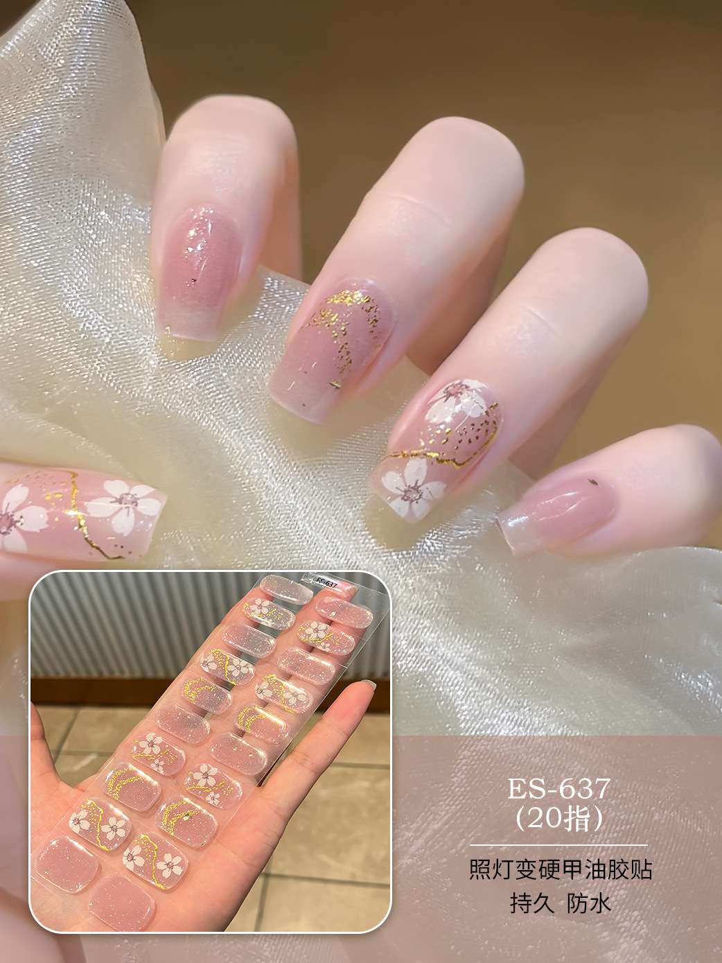 【ES637】20指半固化凝胶uv半烤美甲贴指甲贴片照灯变硬
