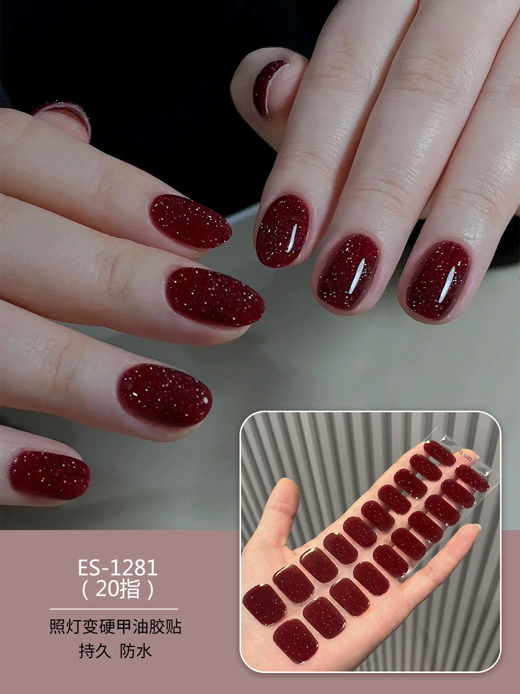 【ES1281】20指半固化凝胶uv半烤美甲贴指甲贴片照灯变硬