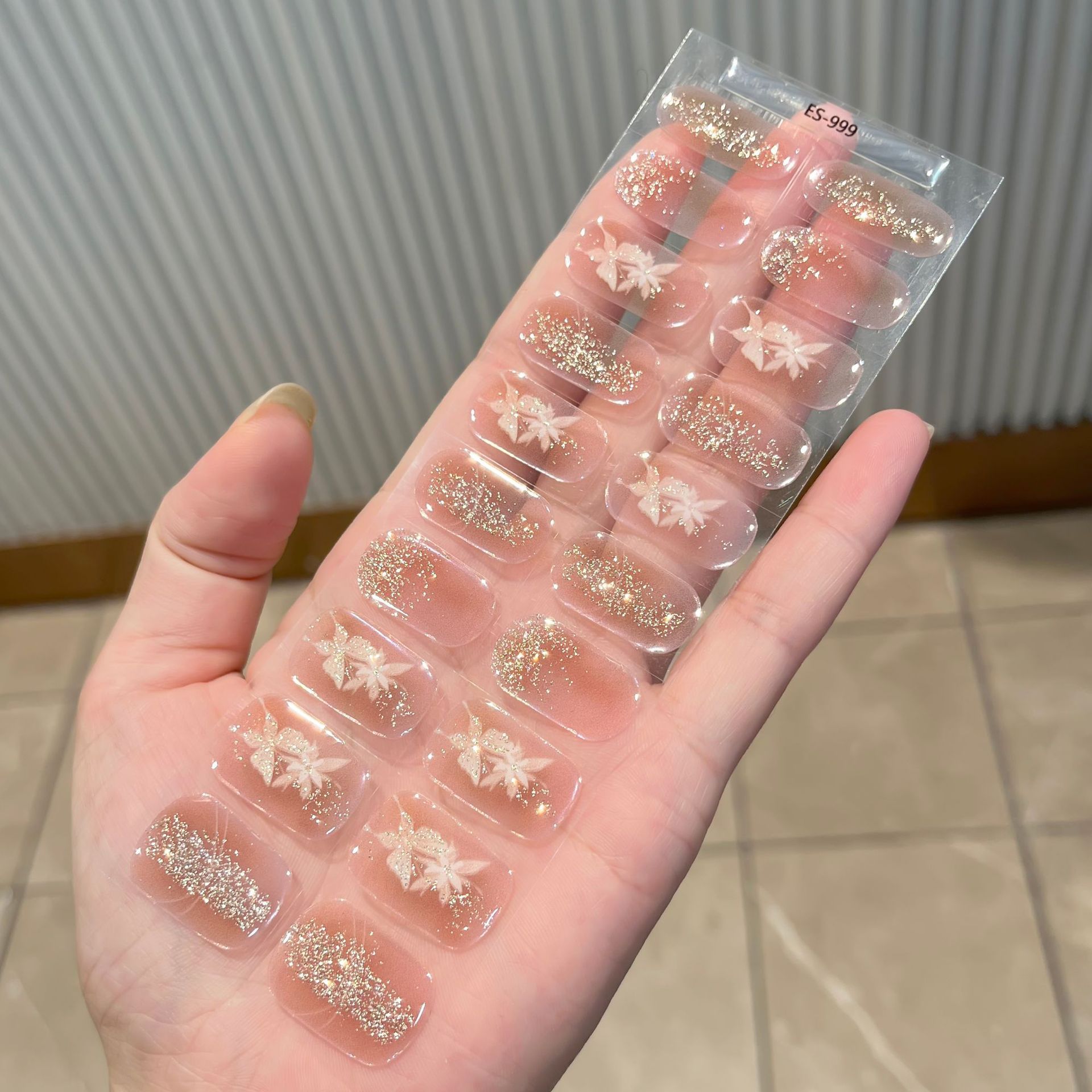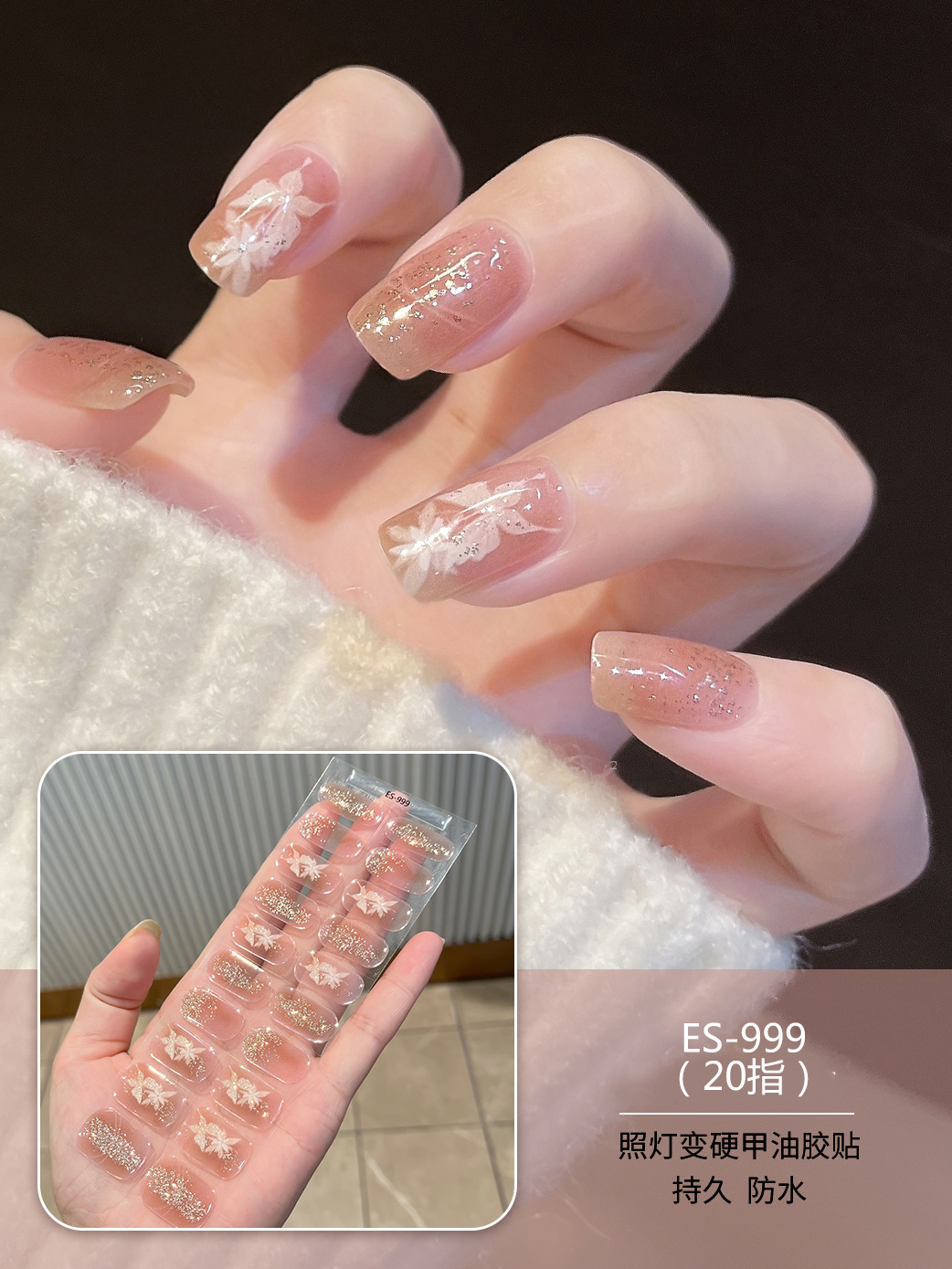 【ES999】20指半固化凝胶uv半烤美甲贴指甲贴片照灯变硬