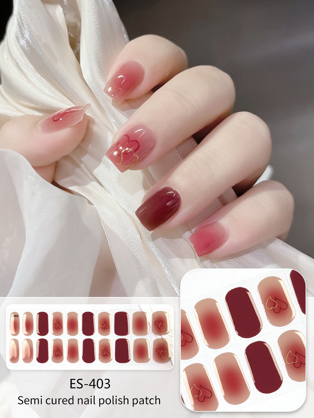 【ES403】20指半固化凝胶uv半烤美甲贴指甲贴片照灯变硬